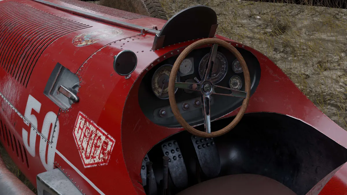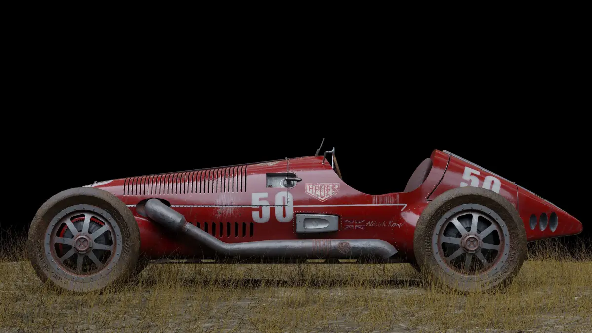 This is a model based on the grand prix legends of the 1920s and 1930s such as the Alfa Romeo 12C, Bugatti Type 31. Taking inspiration from the pre-war aesthetic of cars, the interior components have been suitably designed to reflect the era with a greater bias towards the art deco aesthetic of the 1930s. The model has been completely made in Blender 3.0.0 using custom meshes without the use of any external props. Th texturing has been performed in Substance Painter and the renders shown in this page are made using the latest experimental build of Cycles-X as well as some renders using the Cycles renderer available with Blender 2.93.