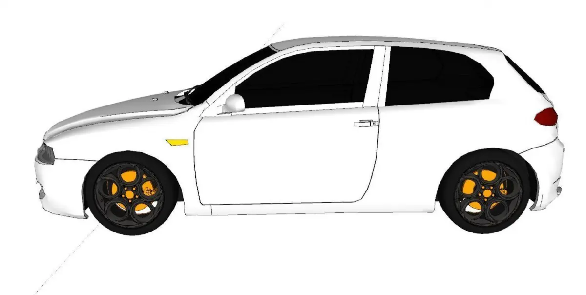 Alfa Romeo 147 model design owner Alfa Romeo, we modified it a little and present it to you. The model is white in color and beautified with yellow. The interior of the car is also modeled.