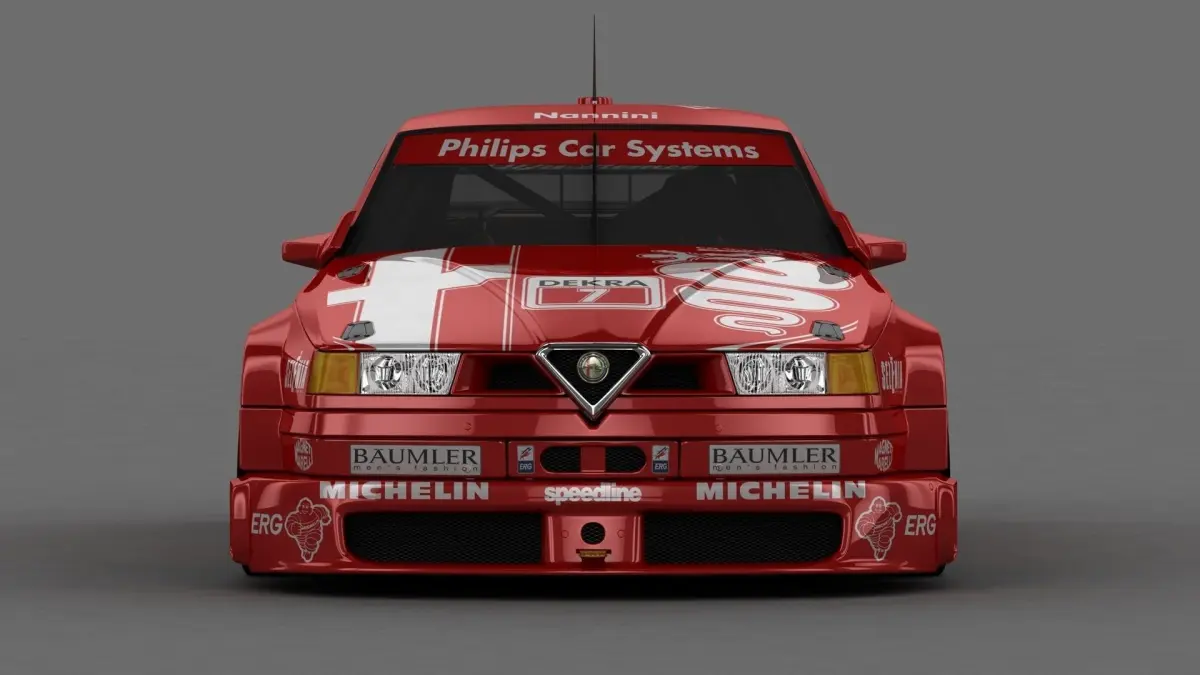 Alfa Romeo 155 v6 TI DTM spec: first non-german car able to win DTM championship against the german army bmw e30 and mercedes 190 in the early '90's. Nannini's version, full textured and uwmapped body and wheels, basic shader for the enterior (unmapped basic generic racing enterior, not the actual real car).