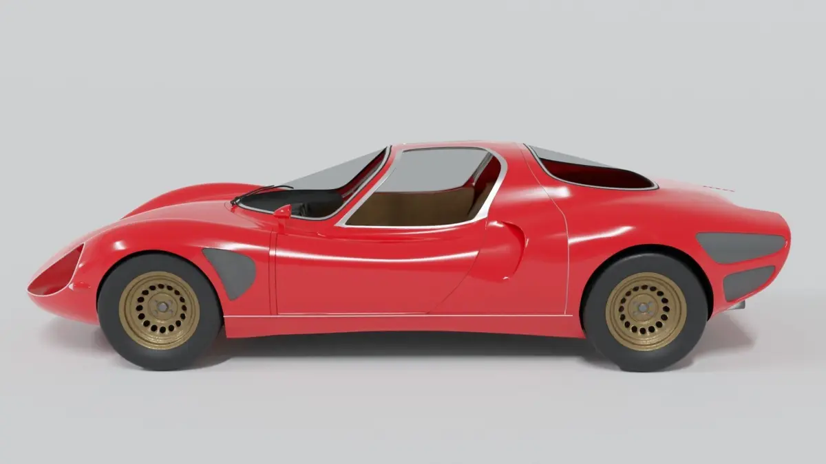 The Alfa Romeo 33 Stradale model was made entirely in blender using a large number of drawings and photographs. The ZIP archive contains textures and models exported in blend, dae, stl, obj, fbx formats.