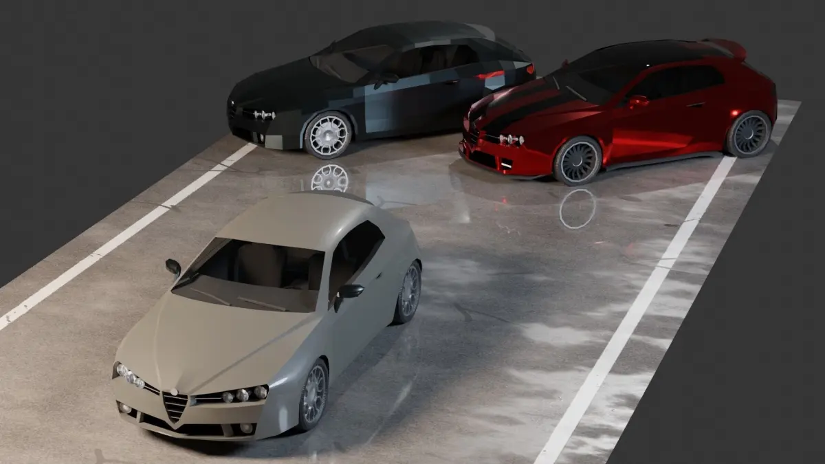 3 cars in set: Basic model + flat shaded model + tuned version. Each with own texture.