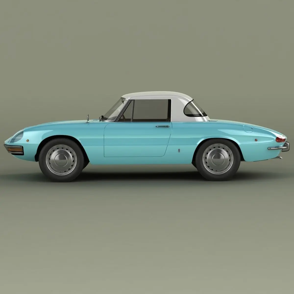 High detailed, correctly scaled model of Alfa Romeo Duetto Smooth Line Hardtop (Spider series 1) 1966-1969. Originally created with 3ds Max 8. Rendered with V-Ray, files with standard materials are included. Unit system is set to metric units. Model is built to real-world scale. Geometry is Editable Poly (quads/tris only). TurboSmooth is use separately to objects (88 of 116 named objects) with iterations 2 (895554 polys, 464080 vert.) Each file was checked before upload. Materials and textures are included (7 textures - jpg 1024X1024).
