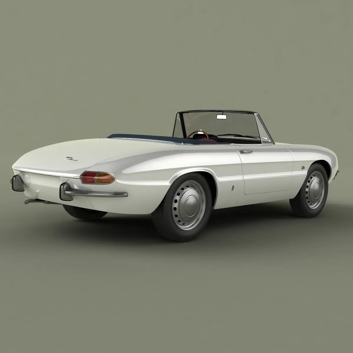 High detailed, correctly scaled model of Alfa Romeo Duetto (Spider series 1) 1966-1969. Originally created with 3ds Max 8. Rendered with V-Ray, files with standard materials are included. Unit system is set to metric units. Model is built to real-world scale.