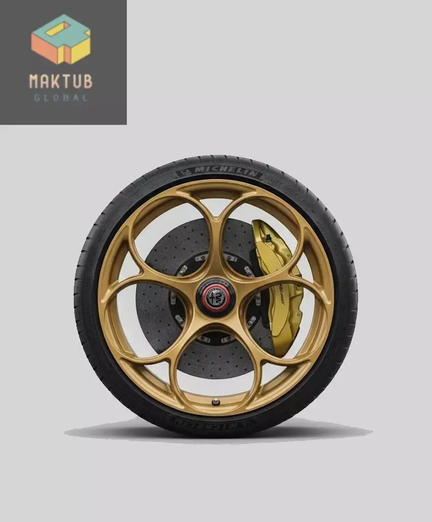High-quality 3D model inspired by the iconic Alfa Romeo Giulia Quadrifoglio wheel, featuring the distinctive 5 double-curved spoke design that defines Alfa Romeo’s sporty and elegant identity.