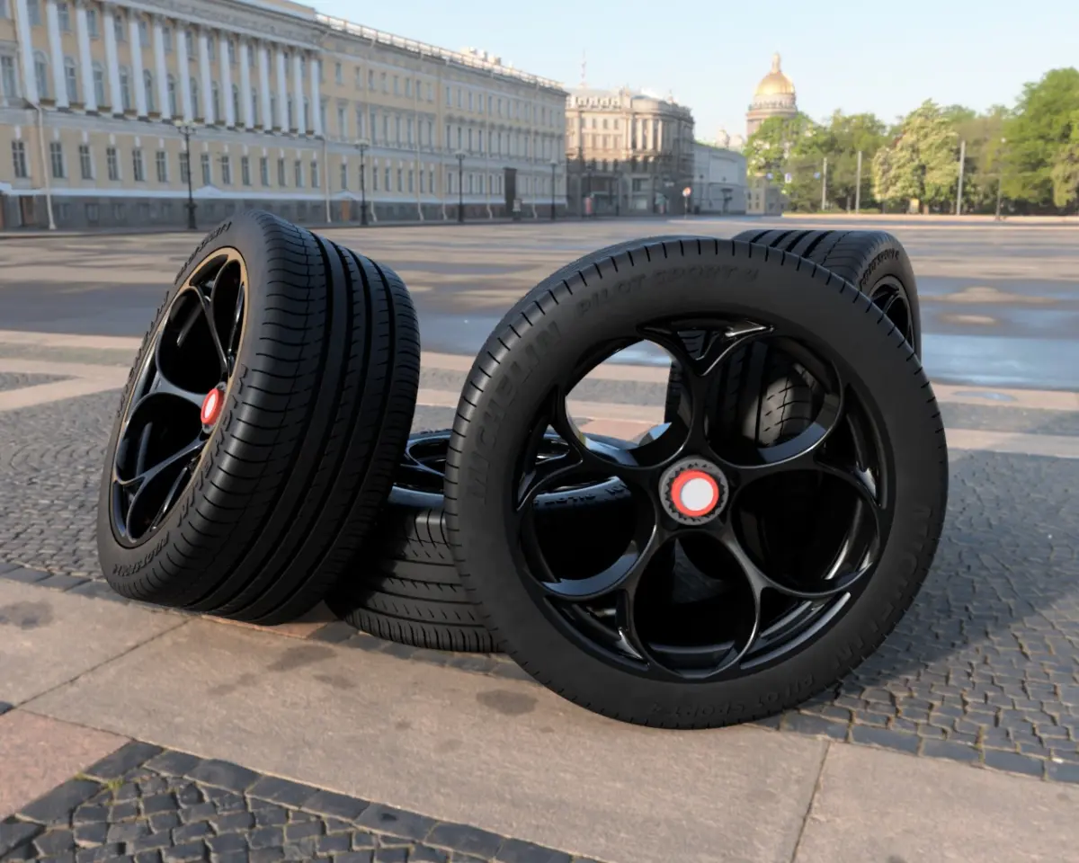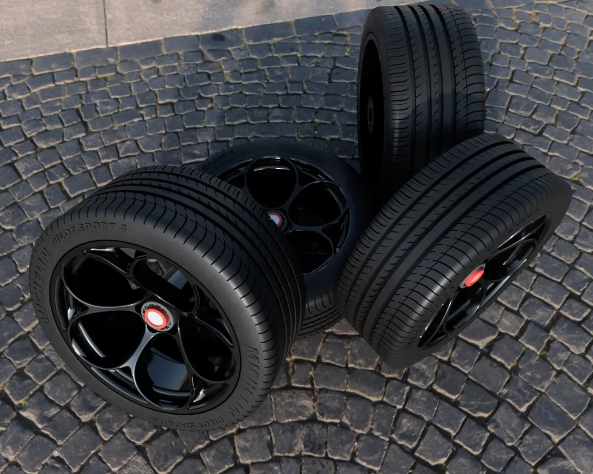 Set of the Alfa Romeo GTAm wheels model, together with the Michelin Pilot Sport tire, in 1:24 scale.The modeling of the piece is proprietary, it is not a 3D model purchased on the internet, you will not find another like this. The object's detail quality is incredible and will make your miniature even more beautiful.The package contain two set of tires, both 20, but the front wheels with 9.5 wide, and the rear 10.5". In addition, it comes with a separate central nut to be easier when painting, and a tire as well.The images in this listing are renderings of the 3D model, as well as images of the model itself in modeling software. They look great on vehicles from the Alfa Romeo, modern or vintage. The sizes are the same from the original measureaments.