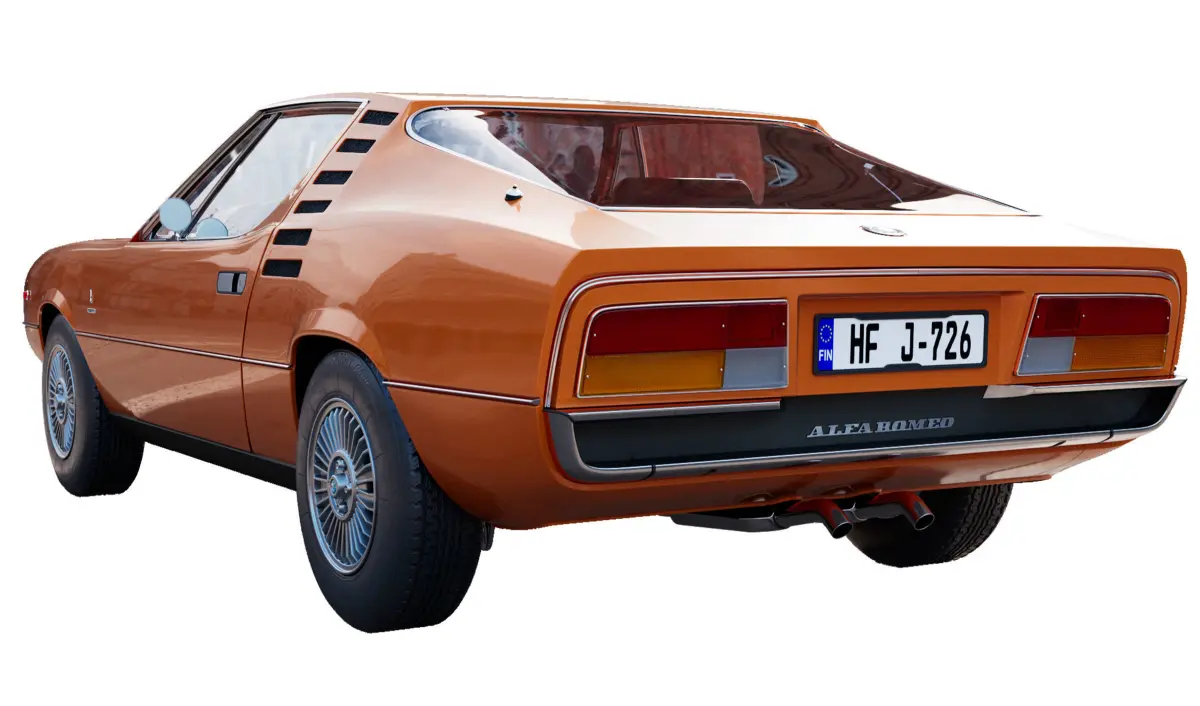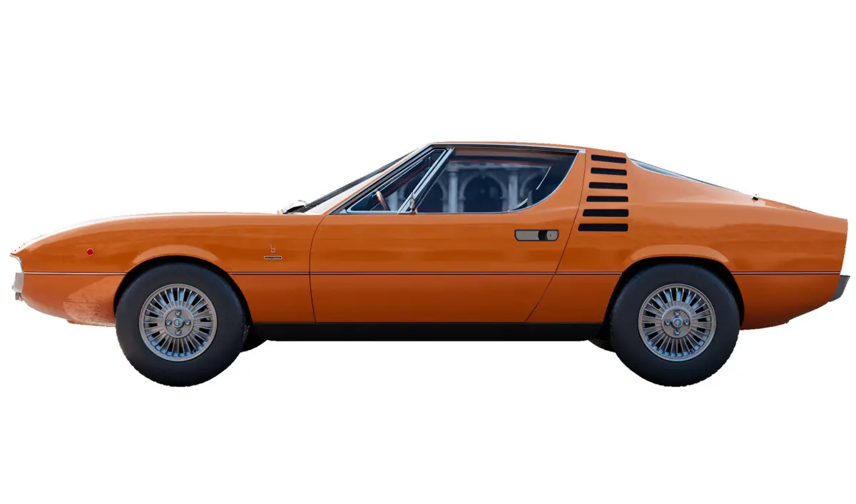 The first two prototypes were powered by an inline-4 from the Alfa Romeo Giulia, but the production version was much more serious. Instead, it was powered by 90° V8, with competition features like dry-sump lubrication and SPICA fuel injection. This was a derivative of the same potent V8 which was used in the Alfa Romeo 33 racecar.Clean geometry Light weight mode.