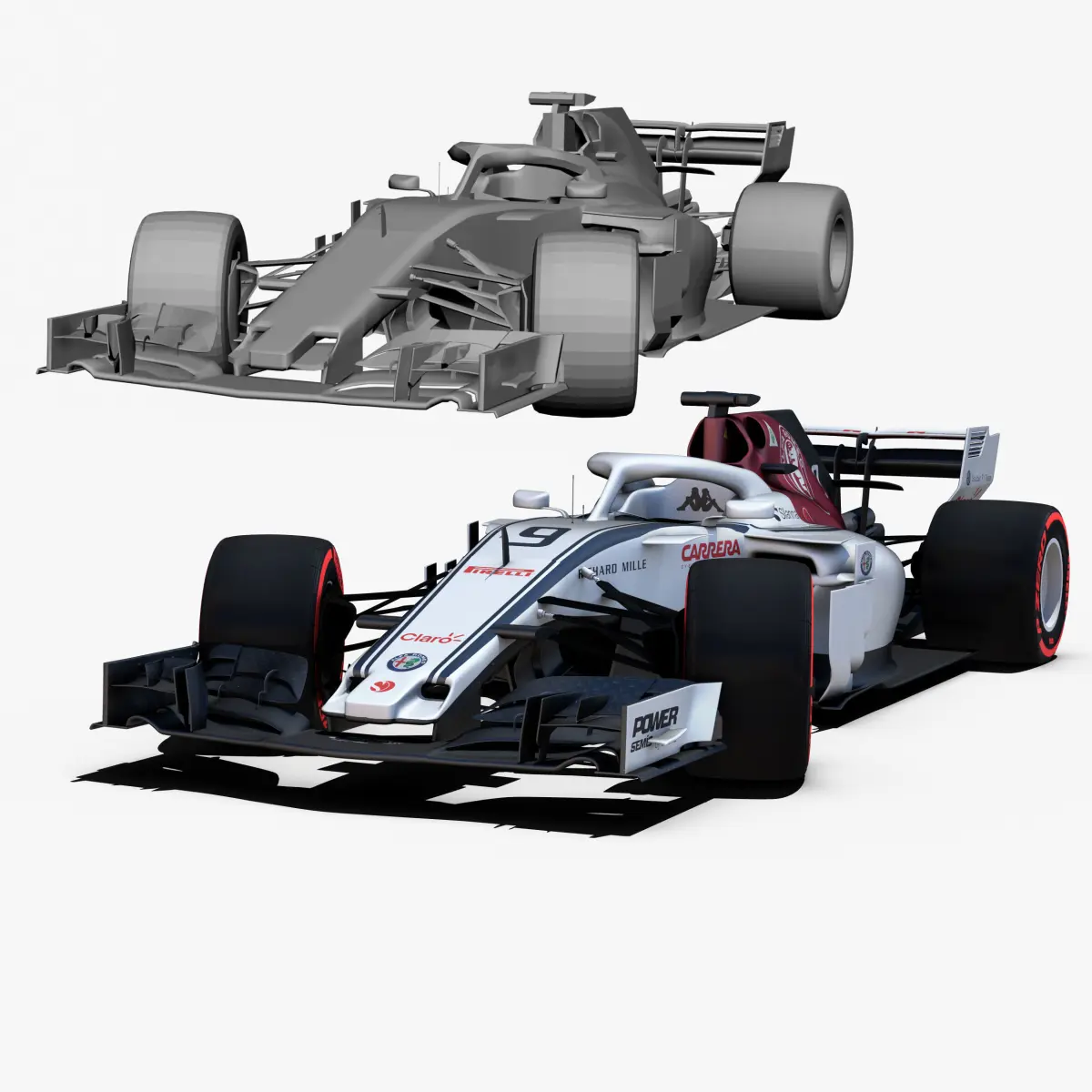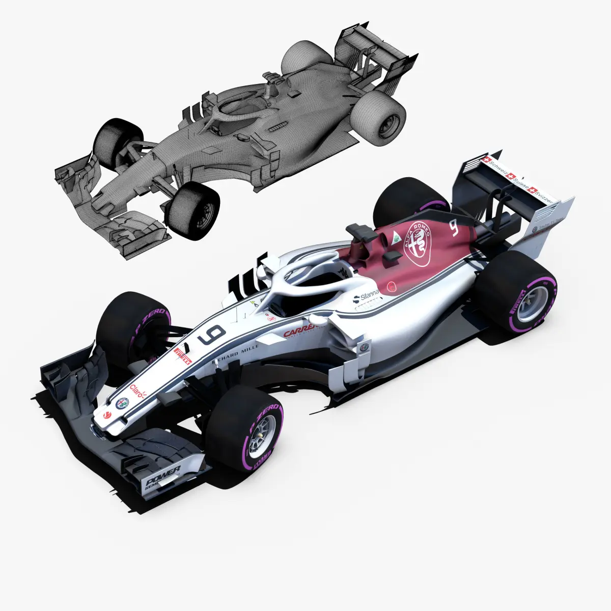 This is a 3D low poly model ,it was designed to provide a high definition in a low poly. Standard low-poly mesh with specific poly count. It`s the most accurate and realistic of the market.It has all of details. Rigged in the maya version. This is a recreation of the model,it can suffer modification over the season.Included all types os wheels, textures for 2 drivers.The model is completely ready for use visualization in maya. For low poly model simply press 1 and for the high resolution press 3. In Cinema4d go to function menu and subdivide. In 3dmax meshsmoothIn the low poly: Poly count : 53600Vertex count : 55636In the high poly: Poly count : 857600Vertex count : 869086Textures included. Each texture is in jpg format and have a 4K texture resolution for high quality It has color textures, specular textures, displacement textures,bump textures.The files are obj, fbx, mb ,c4d and 3DS.In formats c4d, 3ds, obj and fbx model exported to standard materials (textures), not contain mental ray shaders. files with the model does not contain extraneous or hidden objects (lights, cameras, etc.) Included rigging and constrains and driven keys only in the maya format.In the maya format you can easily change the wheels, the pilot and the DRS(open and close).original file format maya render in linear sRGB