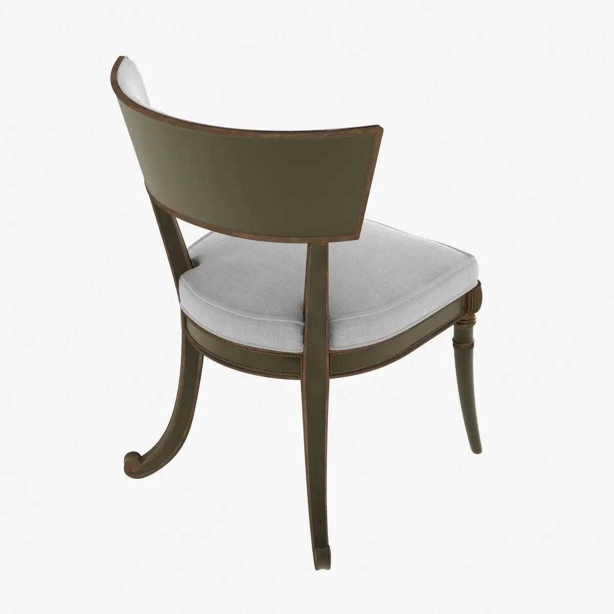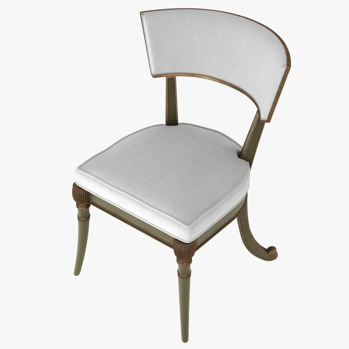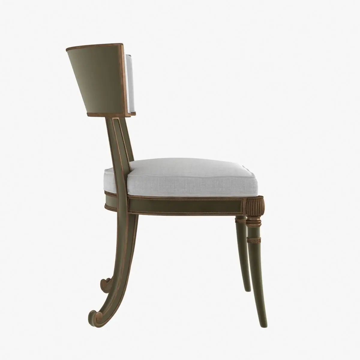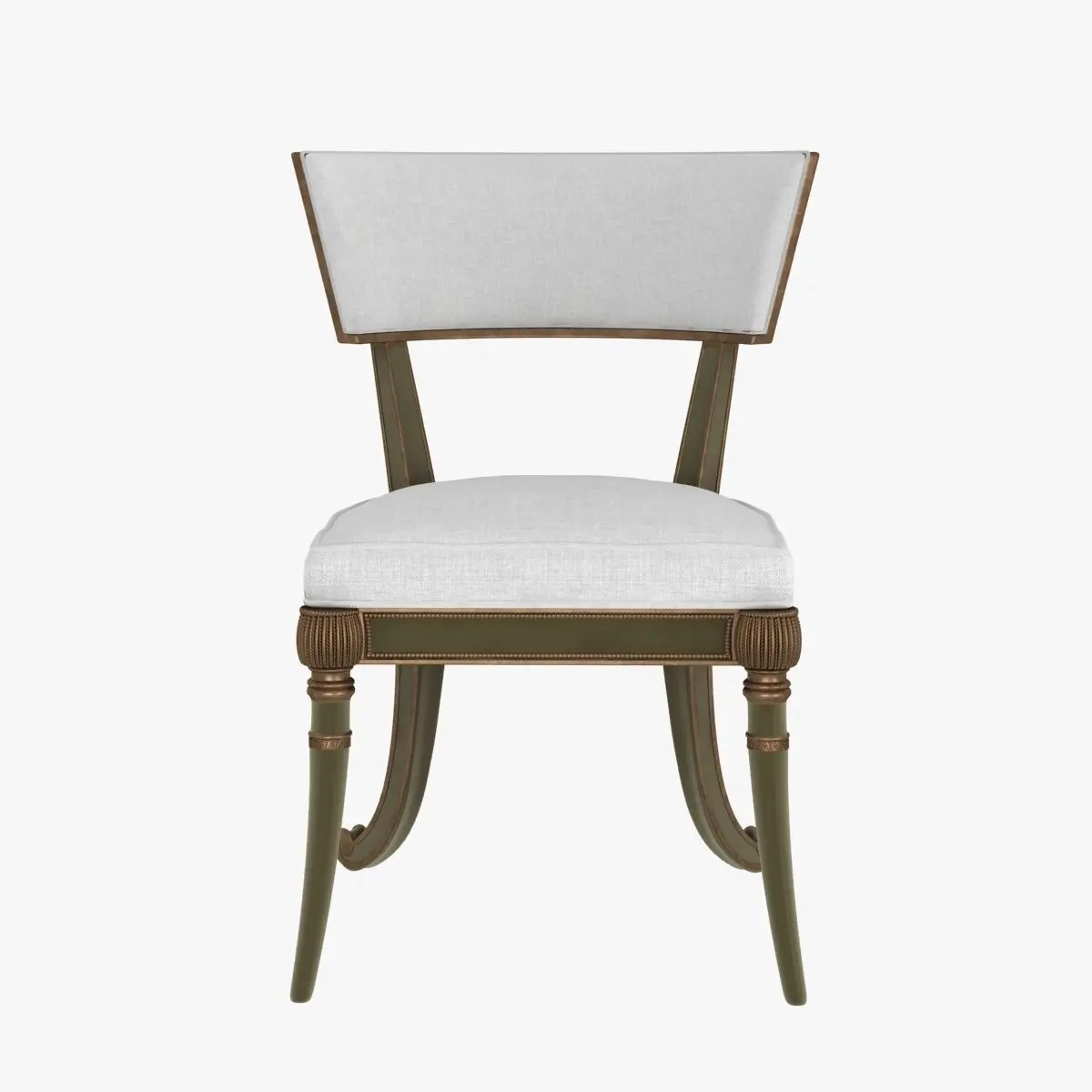 English Regency parcel-gilt Klismos chair, circa 1810. The carved details on the legs makes this chair a different and more sophisticated Klismos Chair.