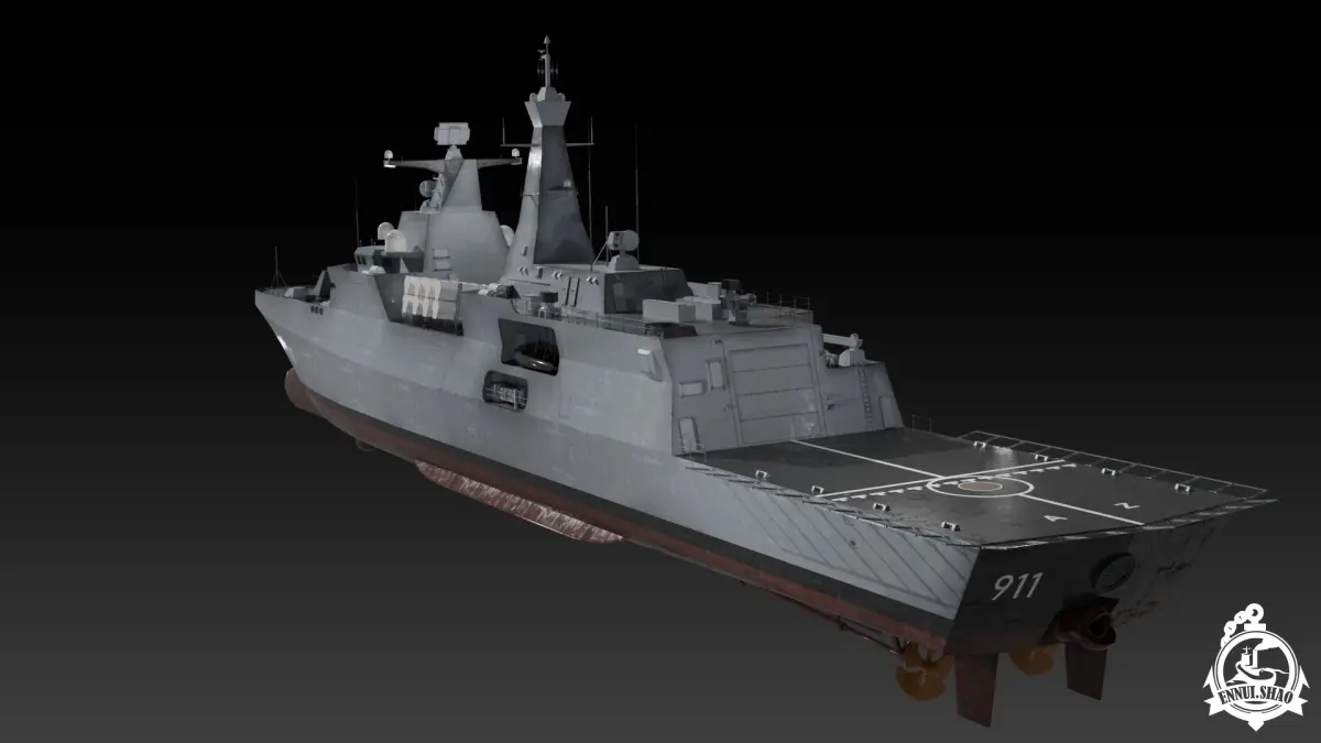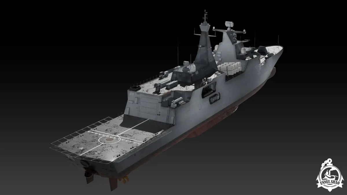 Algerian navy frigate El-Moudamir, a variation of MEKO A200 game ready model. Modeled with blender 3.5. The model has 139021 tris and 78085 vertices. PBR material and UV mapped. 12 materials and 36 textures included in this model. The largest size of texture is 4096x4096, all textures are square. OBJ and FBX format supported.