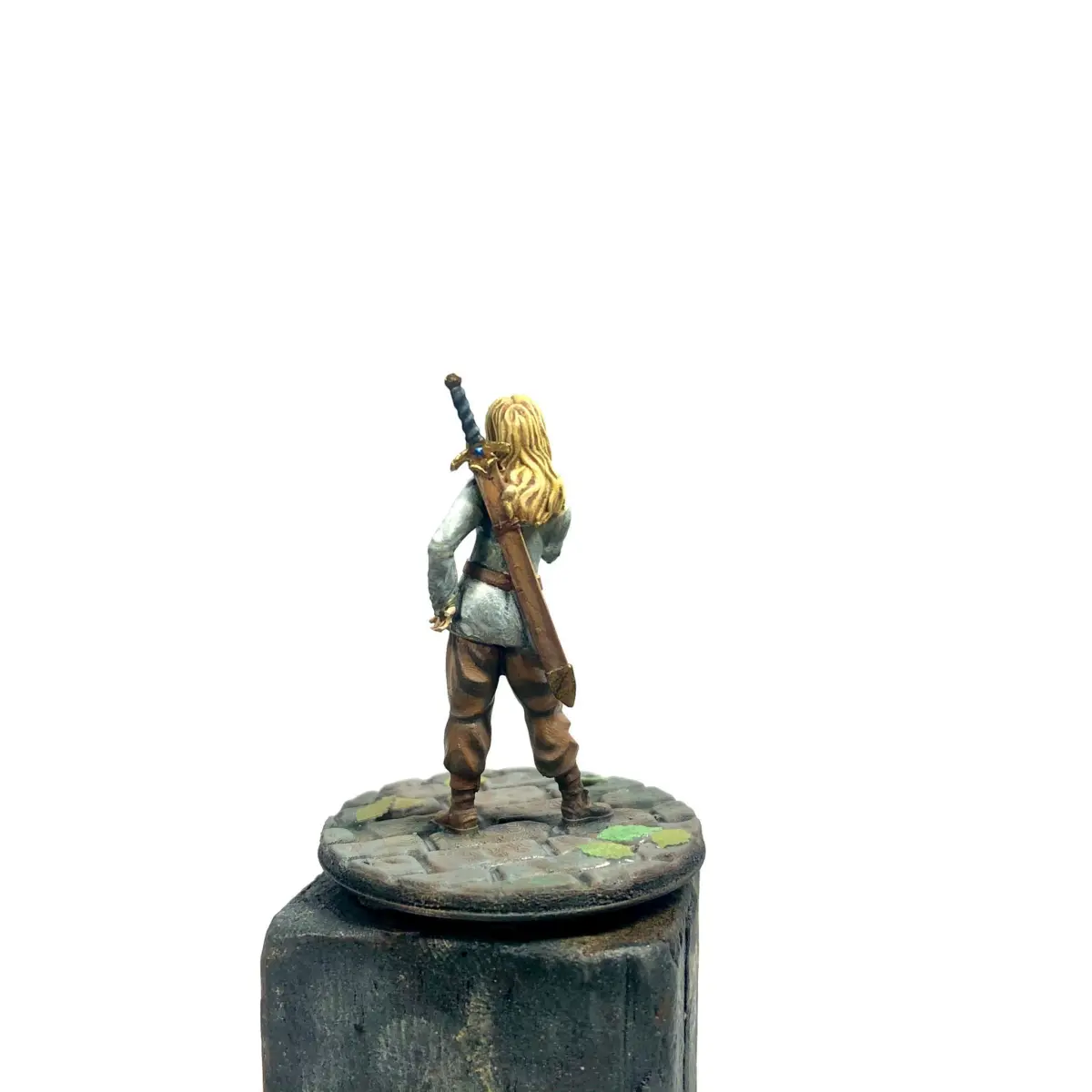 Es un personaje estándar, de una chica con una espada y con una pose divertida. Puede valer como personaje femenino o de niña en cualquier partida, ya que se puede imprimir sin la espada.