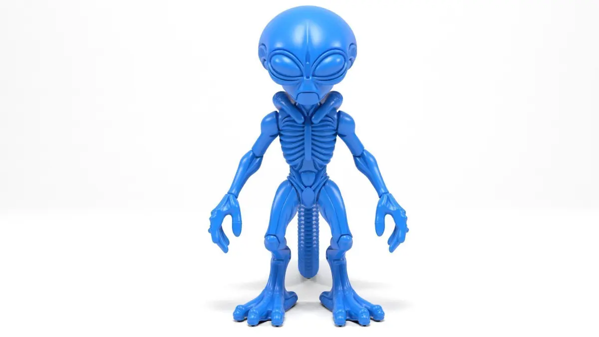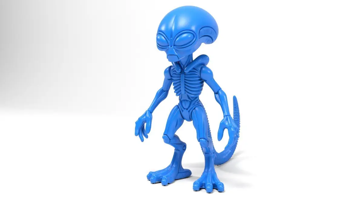 This alien model features a cute and exaggerated design, reminiscent of classic sci-fi aliens, perfect for enthusiasts and collectors.