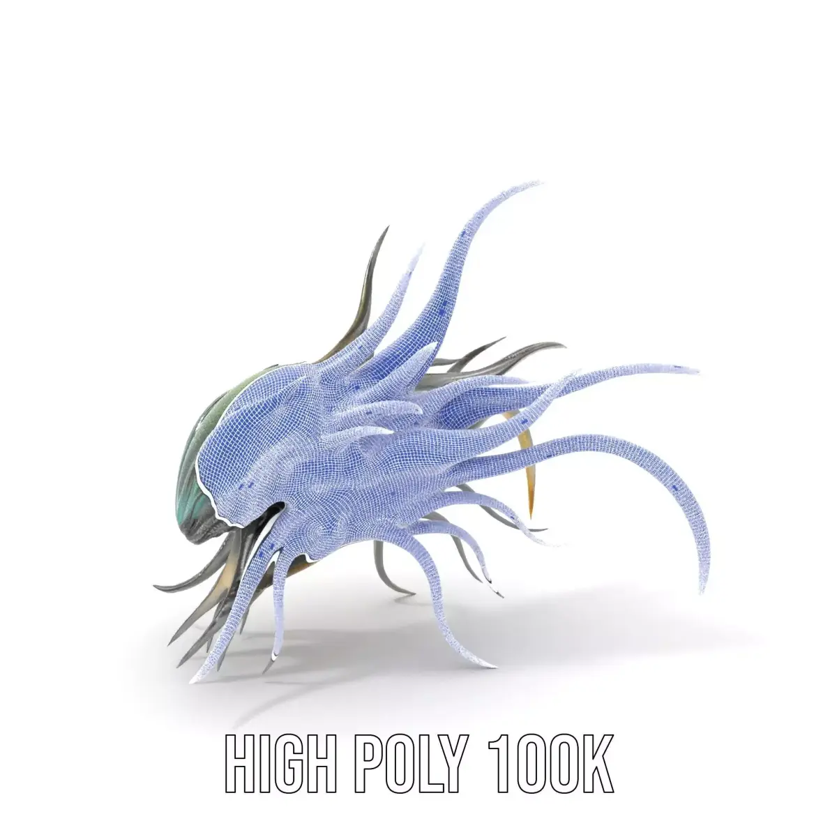 This Alien Biomechanical Creature model is designed to captivate with its intricate tentacle-like appendages and sleek metallic surface. Perfect for sci-fi animations, game design, and cinematic visual effects. The model provides 3 levels of detail: low-poly (1000 triangles for mobile), middle-poly (10,000 triangles for environment), and high-poly (100,000 triangles), making it versatile for production rendering in applications like 3ds Max, Maya, Cinema4D, Blender, and compatible with game engines such as Unity and Unreal.