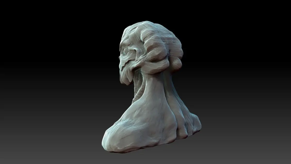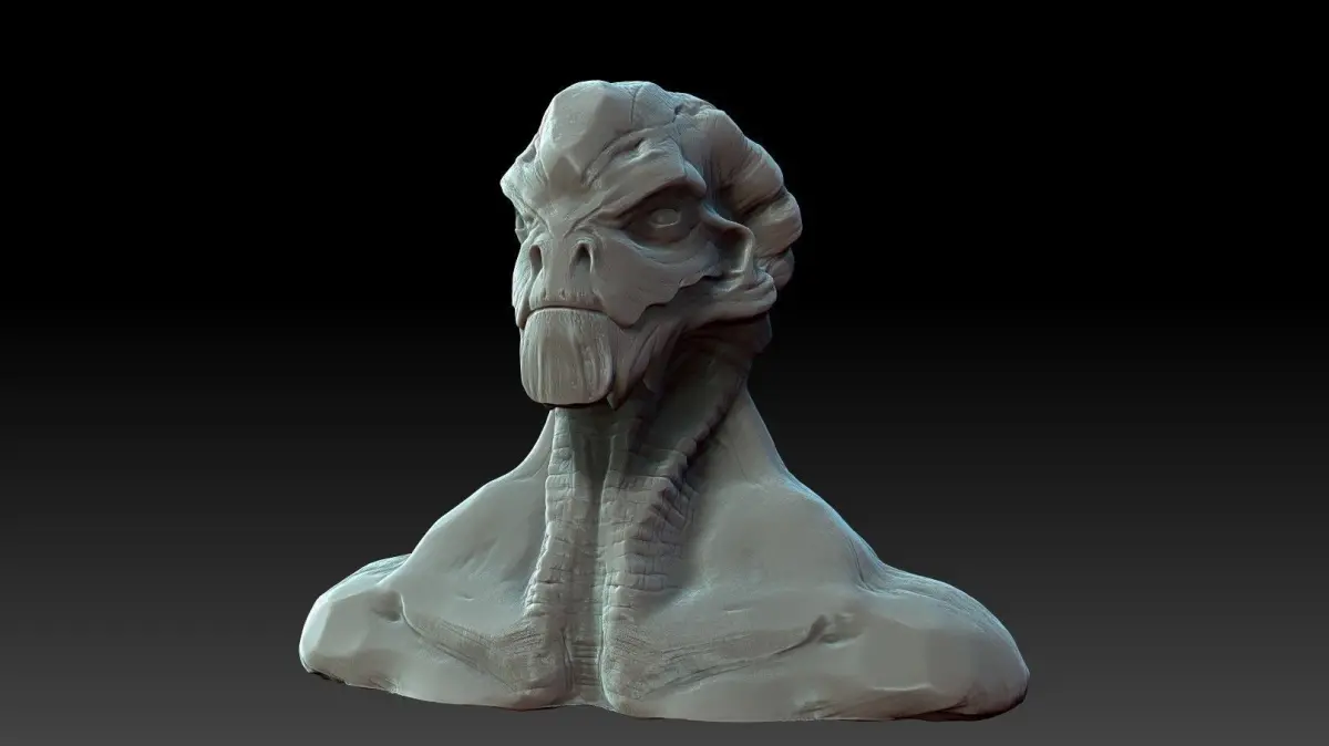 High poly Zbrush sculpted bust of an Alien creature in ztl and obj formats.Rendered in Zbrush and Keyshot.