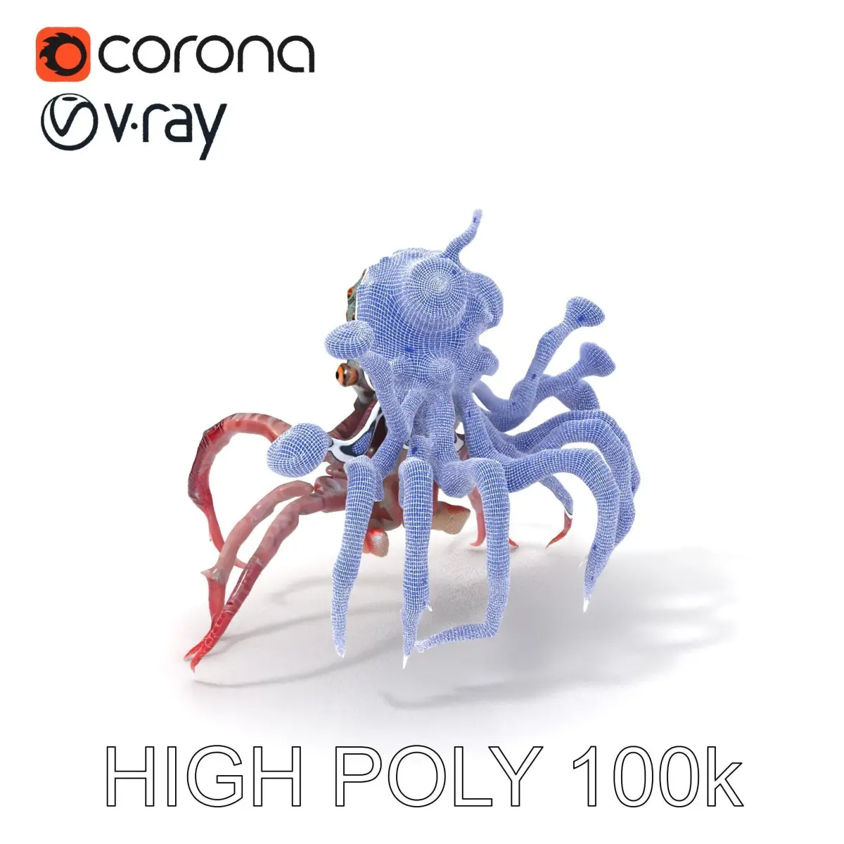 This Alien Cephalopod Creature model pack offers three levels of detail: low-poly for mobile use, middle-poly for environmental assets, and high-poly for production rendering. It's compatible with 3ds Max, Maya, Cinema4D, Blender, and game engines like Unity and Unreal. Ideal for sci-fi films, games, and VR experiences, this model features detailed tentacles and multiple eyes, creating a unique alien aesthetic. Textures include PBR, Diffuse, NormalMap, and reflection/roughness/metallic at 4096x4096 resolution, assuring compatibility with modern render engines. All models are accurately unwrapped with no overlapping UVs. The first image is the reference used for creating the 3D model. Ensure to examine the topology and polygonal mesh in the preview images for quality assessment. If you enjoy this model, please like and leave a comment!