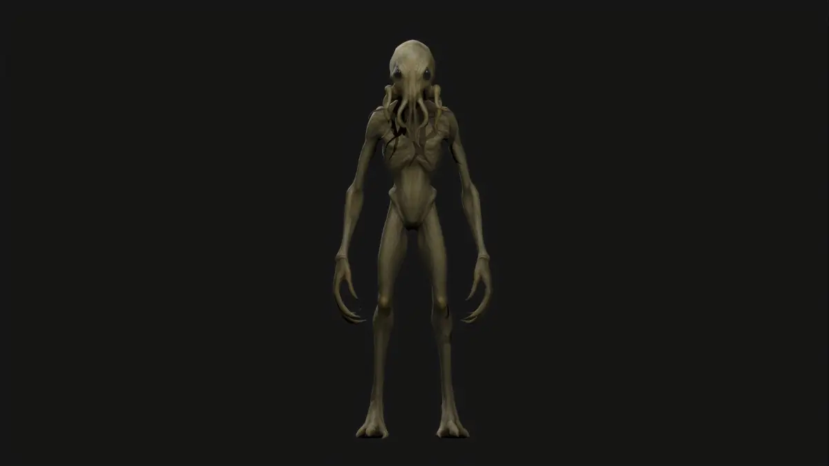Terrifying and unique alien character, perfect for horror or sci-fi projects. This creature features an eerie octopoid head, elongated limbs, and realistic textures to bring a sense of dread to your game or cinematic.