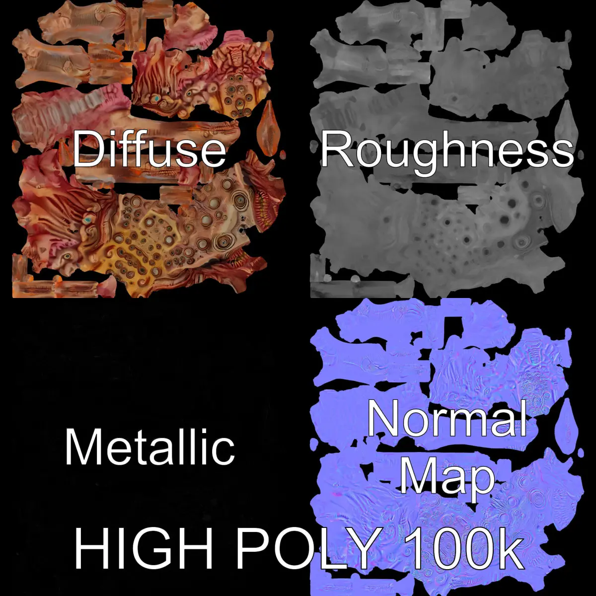 This Alien Creature Model Pack offers three levels of detail: low-poly for mobile, middle-poly for environments, and high-poly for production rendering. It's ideal for sci-fi themed projects, video games, cinematic renders, and immersive VR experiences. The model boasts PBR textures with Diffuse, NormalMap, Reflection/Roughness/Metallic maps, and all textures are 4096*4096 in size. With detailed, non-overlapping UVs, this model is compatible with modern rendering engines and game engines like Unity and Unreal.