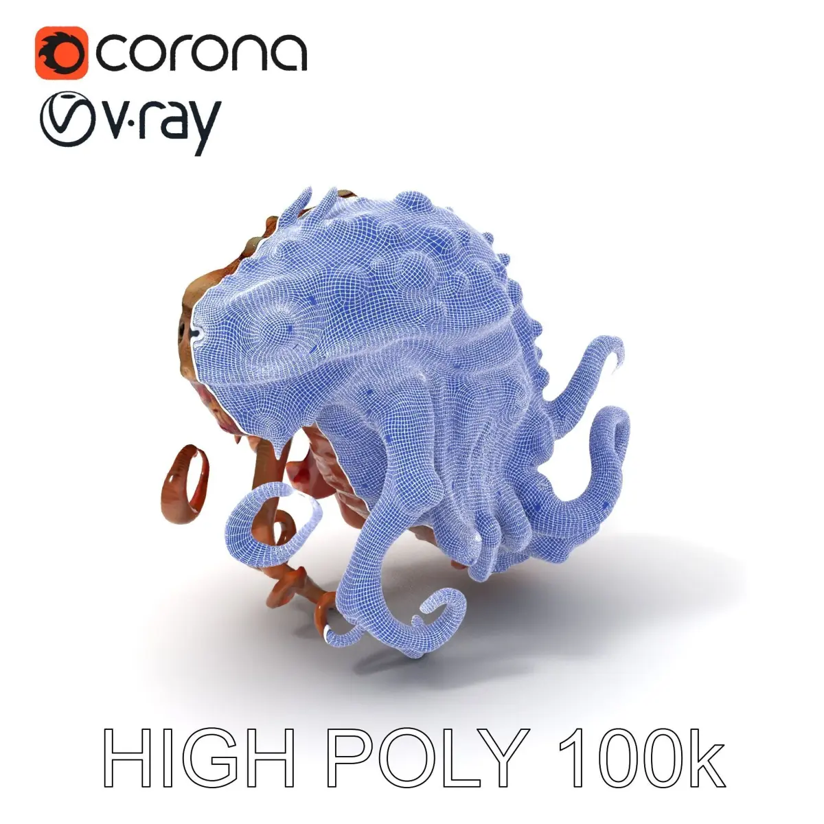 The pack is meticulously crafted for an accurate match to the original reference with preview images displaying the topology and polygonal mesh. Elevate your projects by incorporating this unique and detailed alien creature model.