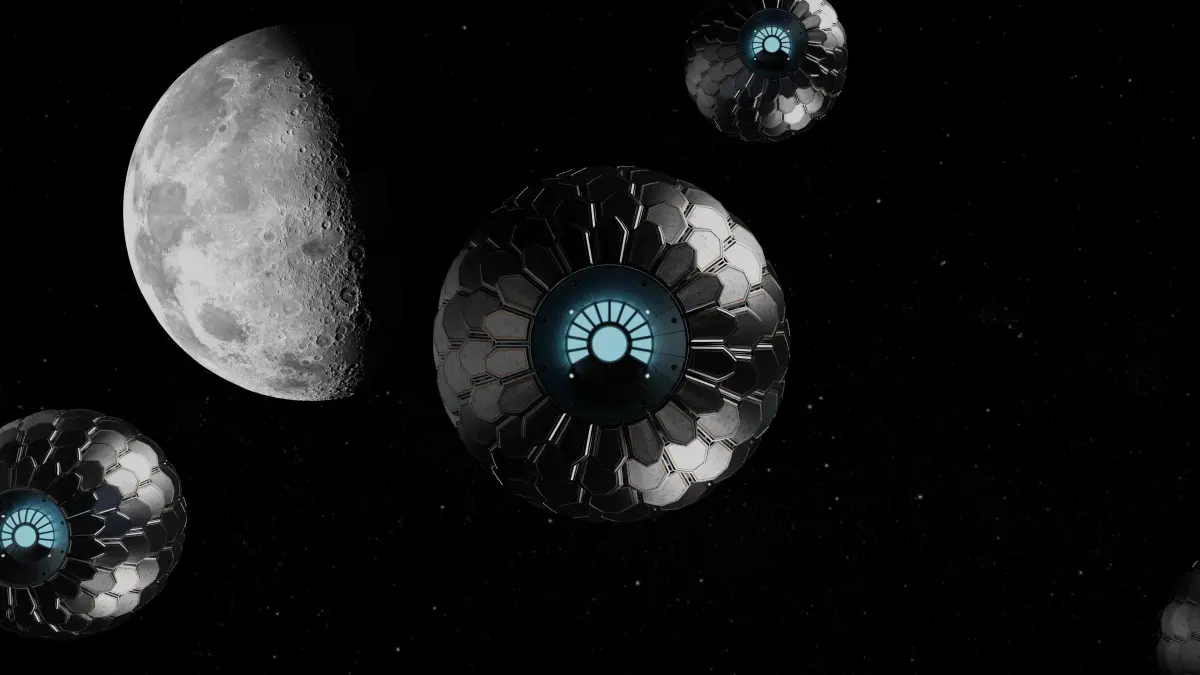 A 3D model of an alien spaceship with dragon armor scales which can rotate, creating an amazing sci-fi effect.
