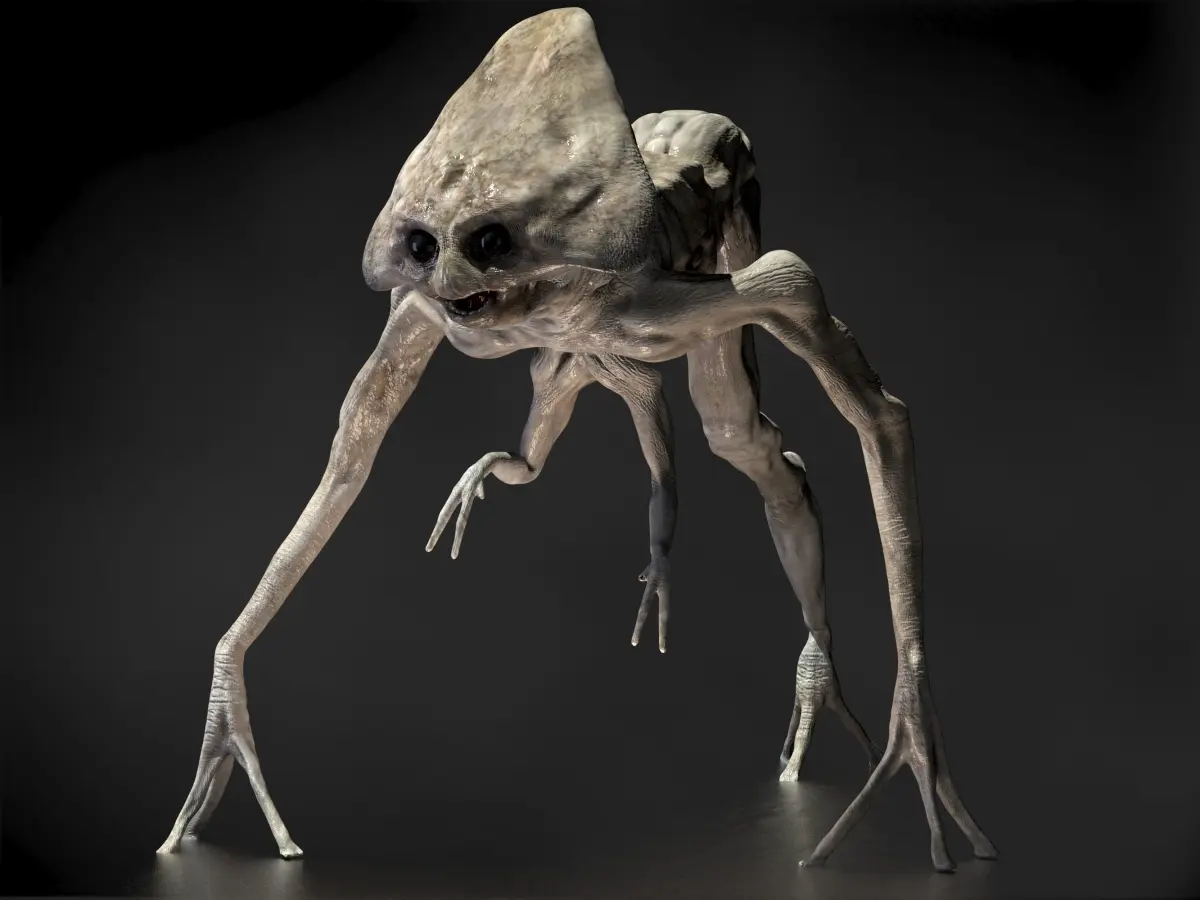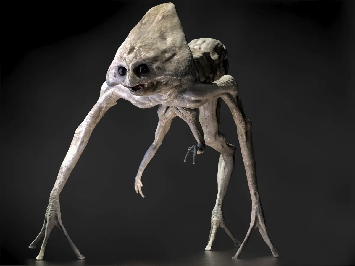 The aliens themselves have two minute arms hanging to their chest, two long, skinny arms with three fingers on each hand, and one leg. The heads are shaped in triangles, which resembles their Tripods. Their eyes are black, and they have two sets of sharp teeth. They also appear to be highly intelligent.