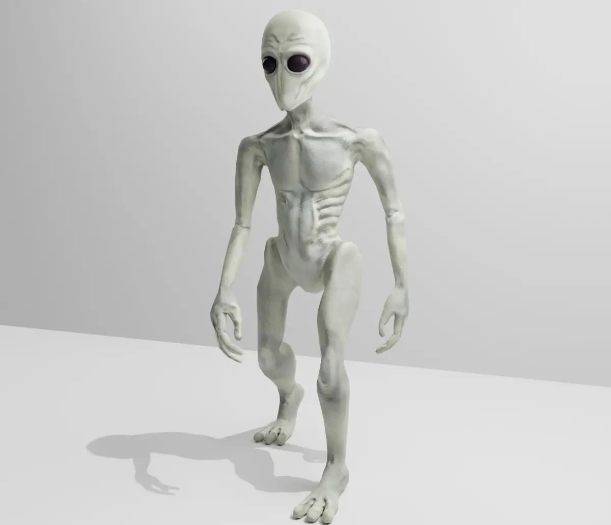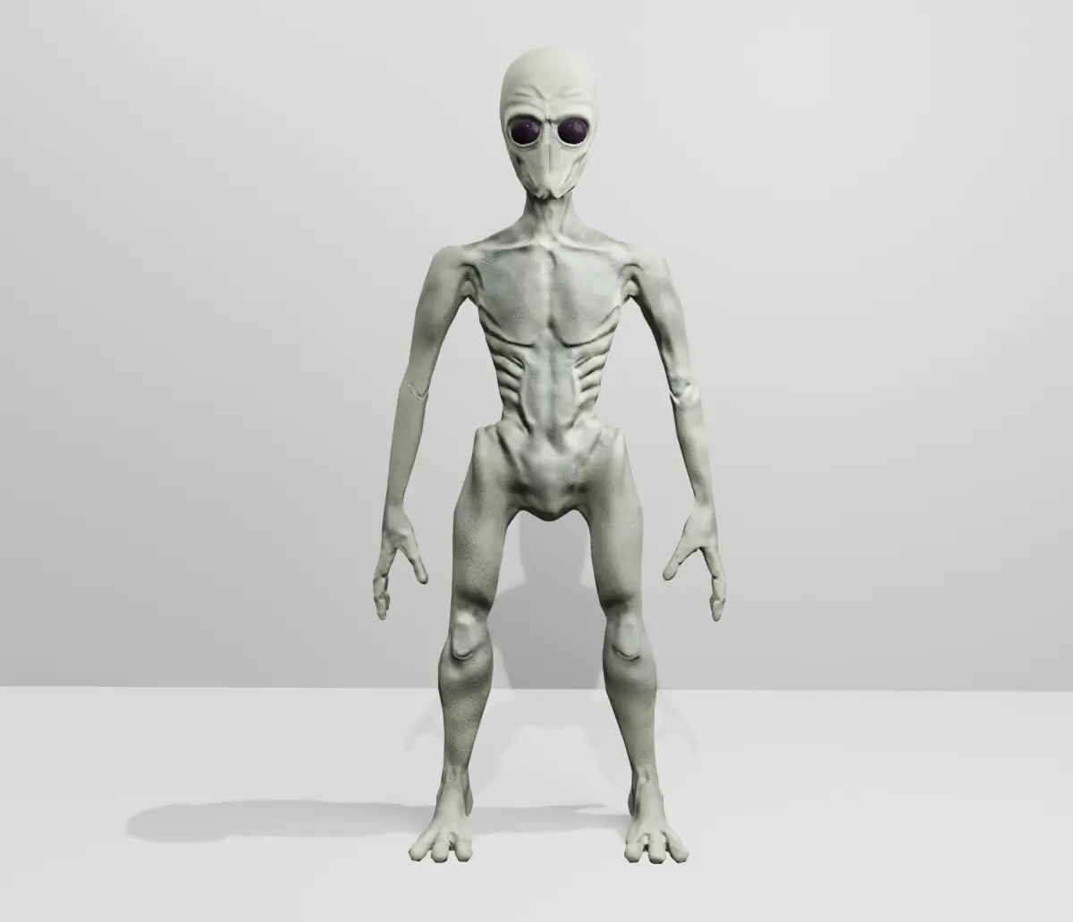 Fictional almost clasic alien humanoid creature:) Can be used in sci-fi, fantasy projects, ect. Sculpt, retopology, rigging, normal and roghness maps made in blender 2.90.1.