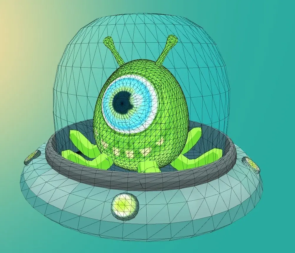 This is a game-ready UFO flying saucer with alien inside. Model total tris count is 7876.