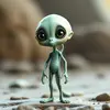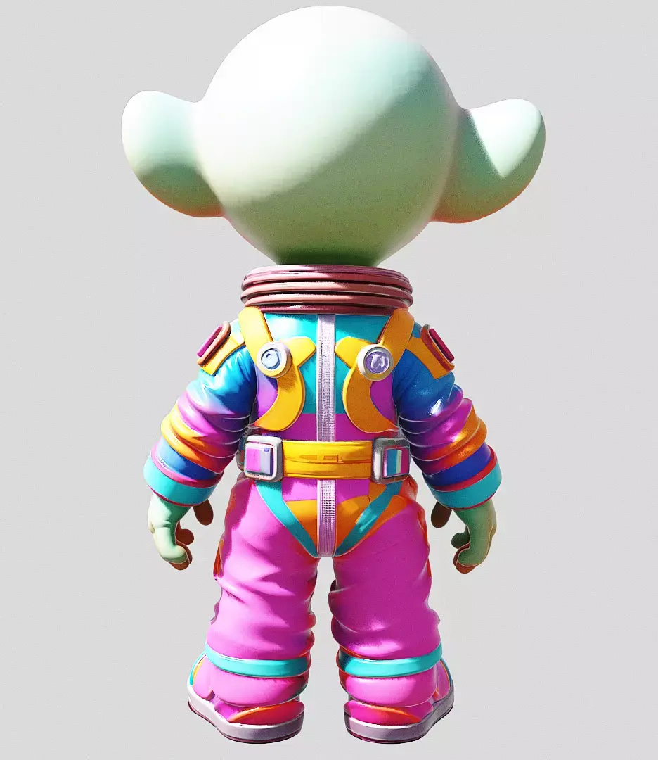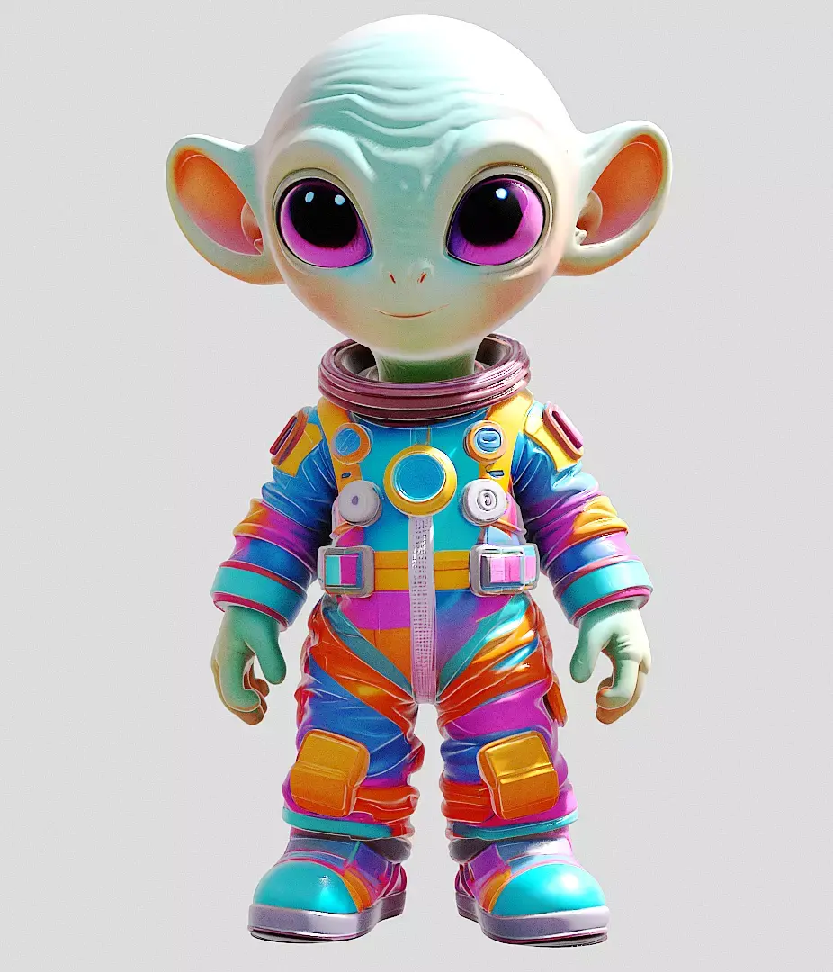 A stylized, friendly alien mascot with a rounded, pear-shaped body, large expressive head, and smooth cartoony proportions. The model should use quad-dominant topology with clean loops around the face, mouth, and limbs for good deformation, even though no rig or animation is required. Antennae, three-fingered hands, and bioluminescent skin patterns are included as simple, soft shapes.