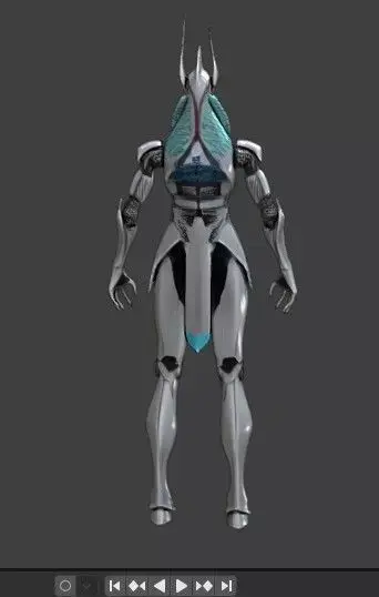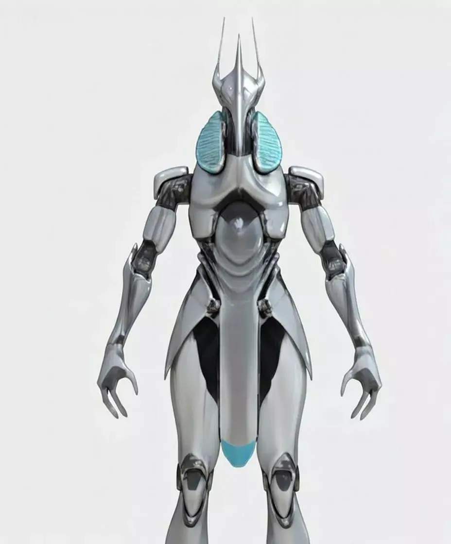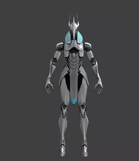 Discover this high-detail sci-fi alien mech robot 3D model, perfect for futuristic games, animations, VR/AR projects, concept art, and cinematic renders. Featuring a sleek metallic exoskeleton with glowing cyan/blue energy accents, insect-like helmet design, articulated limbs, and a cybernetic humanoid structure inspired by advanced extraterrestrial technology.