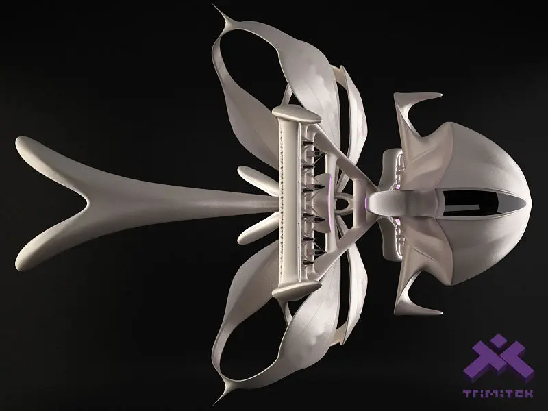 3D model of semi-organic looking alien mothership with set of fighters for your virtual star wars.Four type of fighters are instanced along the docking structure (available as separate products).