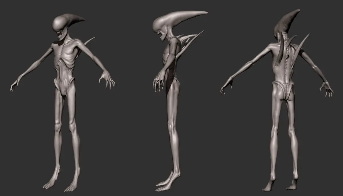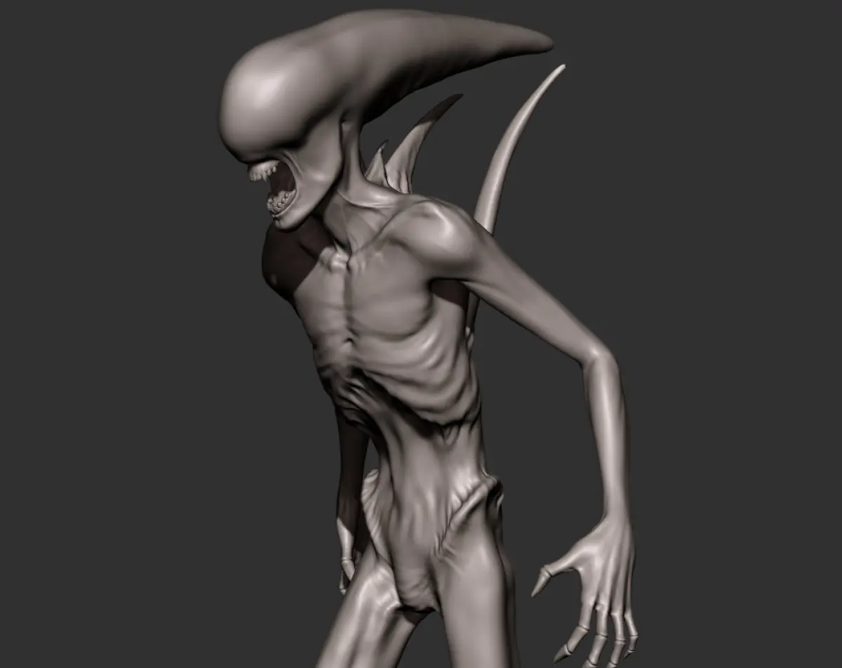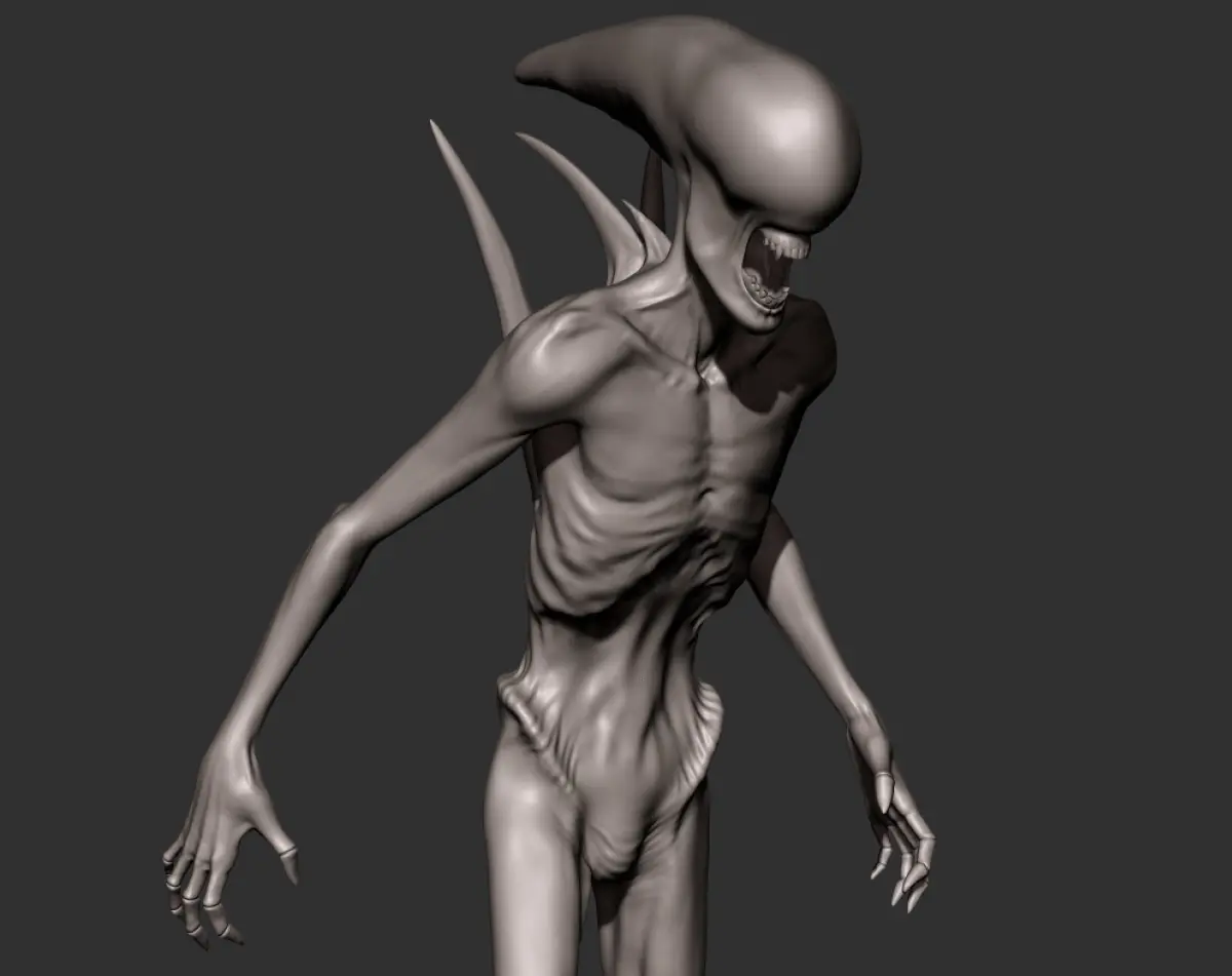 Realistic Alien done in Zbrush, with 5 subdivision levels - lowpoly (25,397) highpoly (6499072).