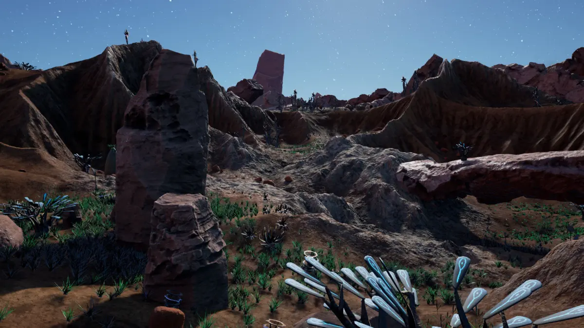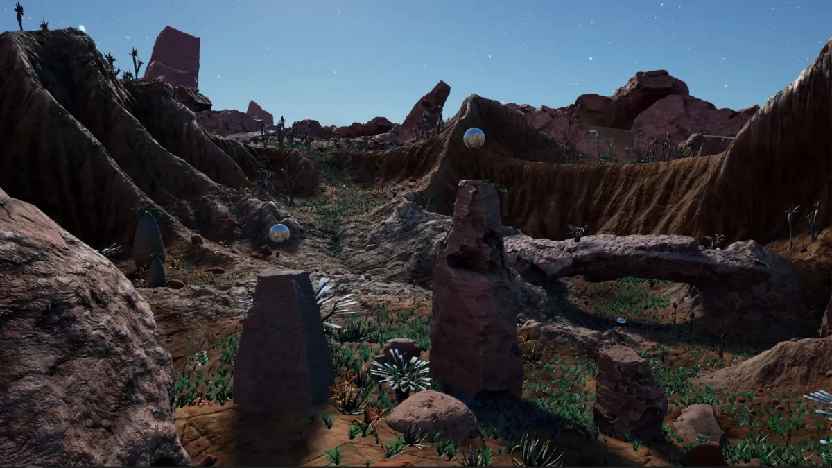 This Desert Environment package features an arid ecosystem of strange plants that flow in the wind; growing in an ancient crater set on a desert planet.The package contains everything you need for your game environment; including 10 unique plant species, 5 rocks , a realistic Landscape, a tileable backdrop landscape mesh, along with a beautiful starry sky.You can download a packaged demo of the Unreal 4 project here:https://bit.ly/APV2_Demo