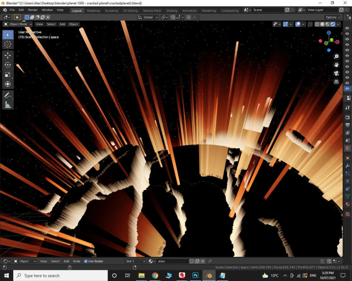 Planet explosion model made in Blender and rendered in Eevee. I've included 2 models in this pack; orange and blue theme. All textures are procedural. This would suit all sorts of sci-fi renders. Enjoy.