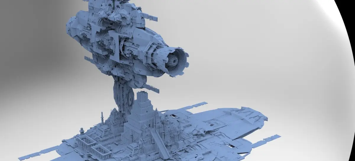 Alien Ship Over Colossal Gods Pyramid set 3D model
