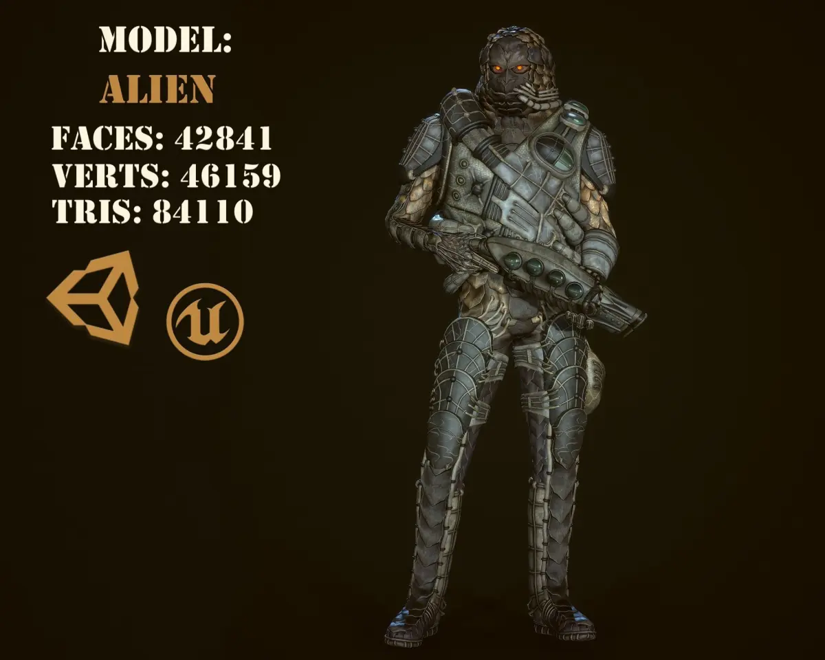 Low poly model of the character Alien