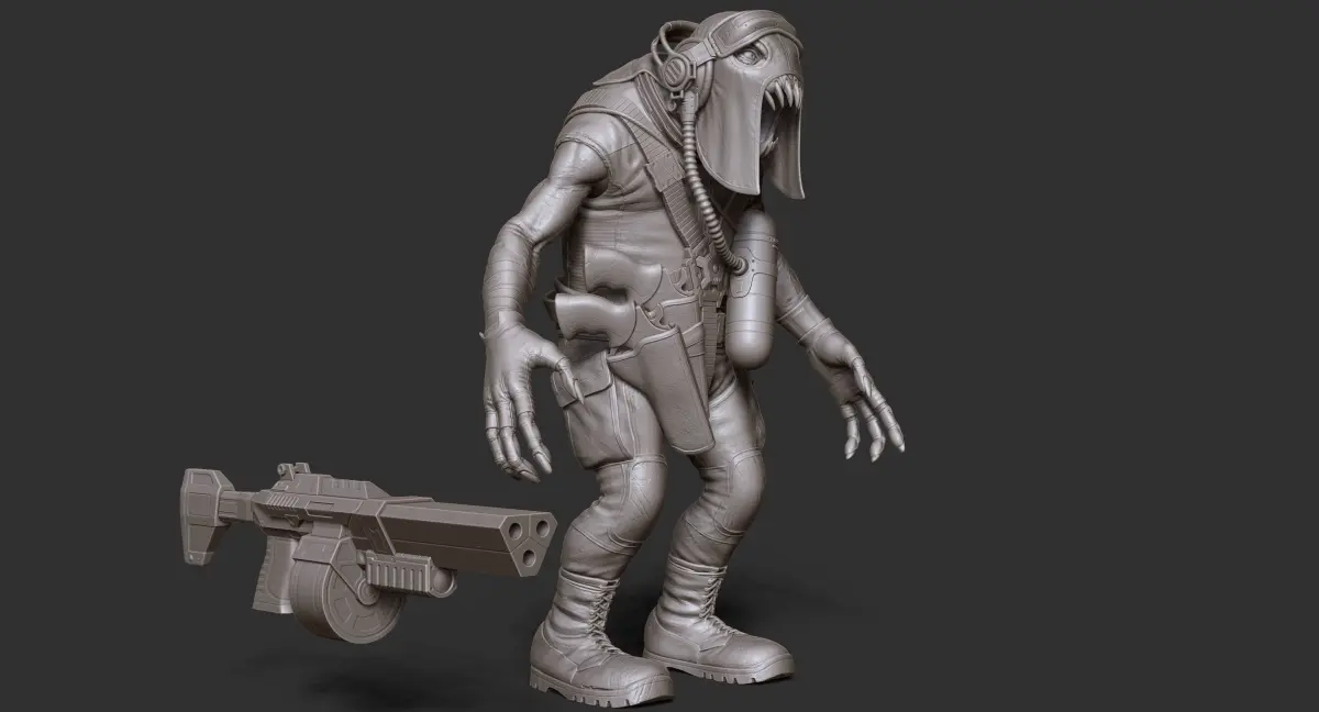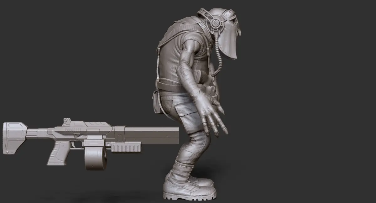 Alien Trooper sci fi Zbrush 3D Model in 3 diferent poses.