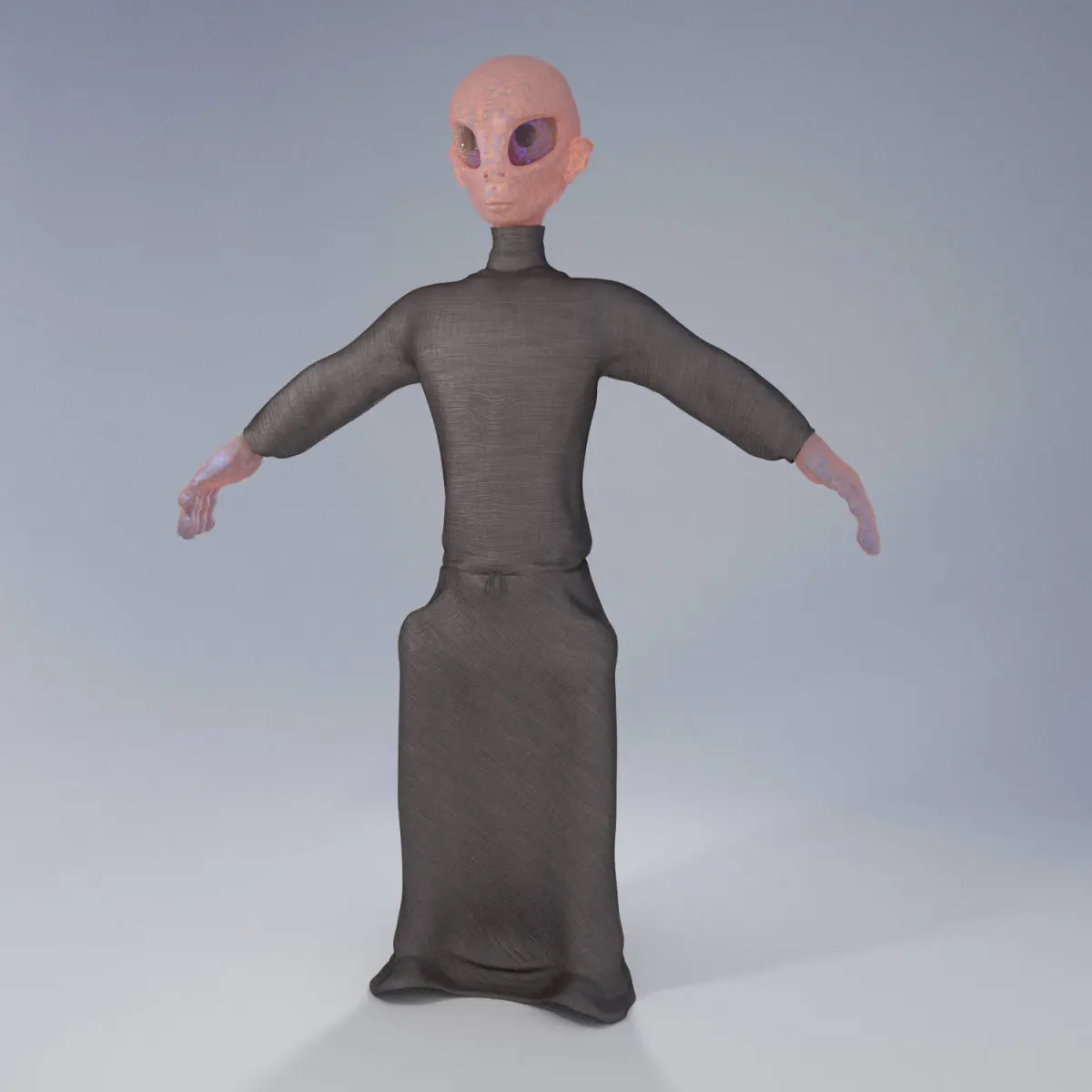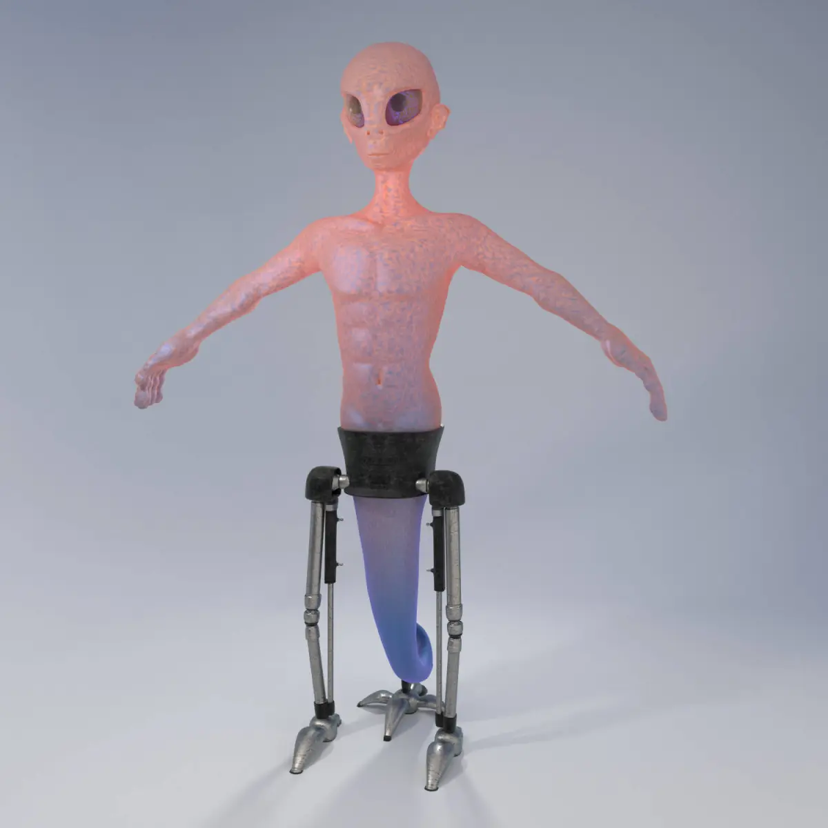 This model is based on a concept for an amphibious alien species. It has a lot of lizard like elements with just hints of aquatic capabilities. I designed a robe like clothing that they’d wear. Very loose and made of a plastic or metal material that can get wet. They had a tripod contraption to help move on land effectively. I think the most intriguing part of this project was creating the materials for the skin. I decided to make it a blend of human skin with layered subsurface but then give it higher glossy values and a slightly more waxy appearance to convey waterproofing.