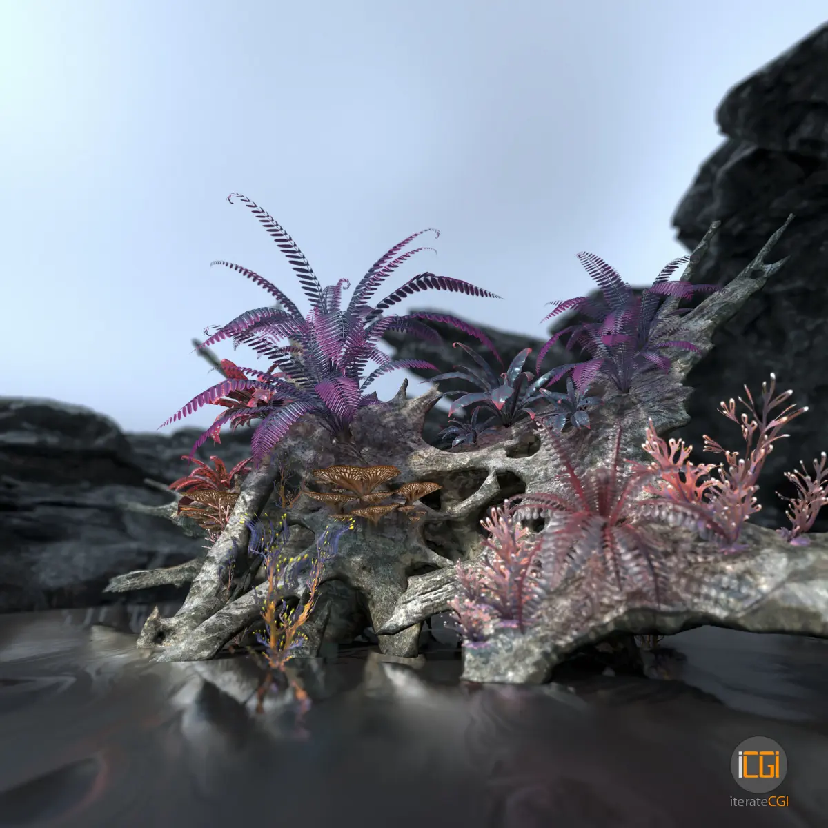 Graphically stylized alien plant set for environment creations.