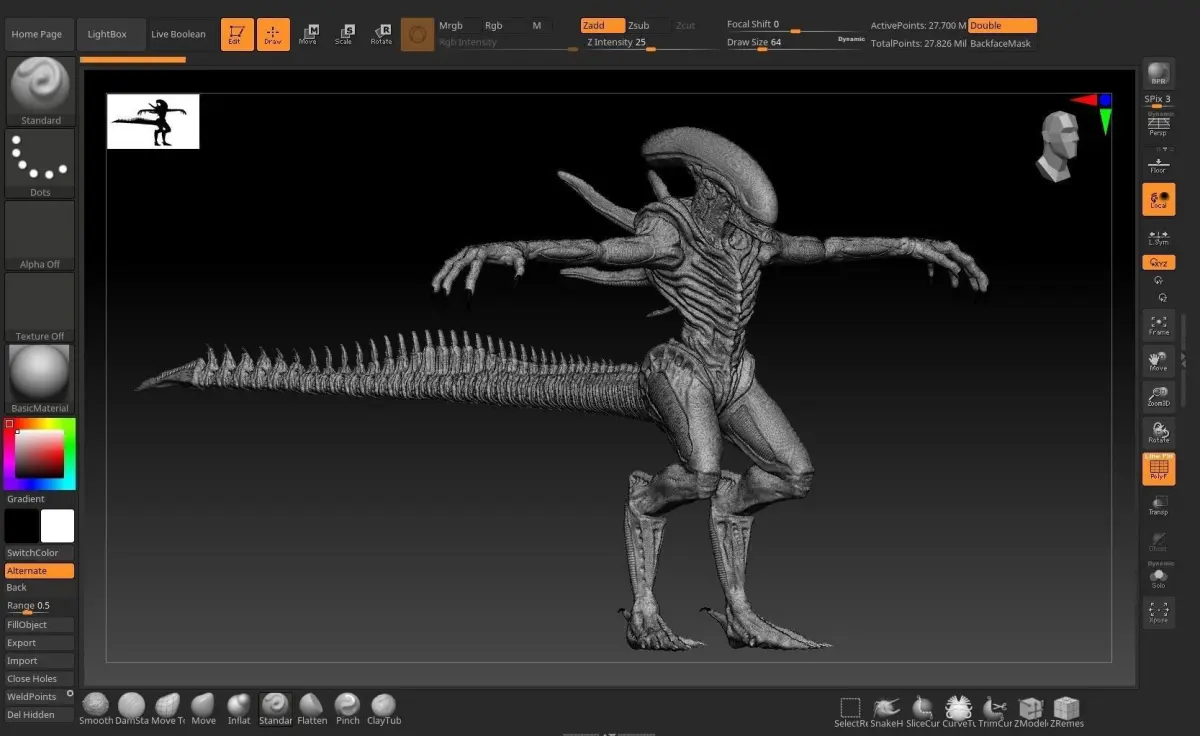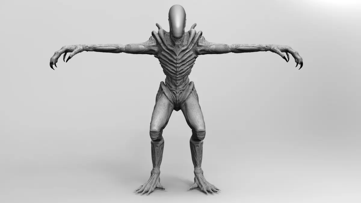 Alien Xenomorph Hunter 3D Production Model Rigged W Maya consists of a low poly designed to be used for animation, gaming, renders etc.