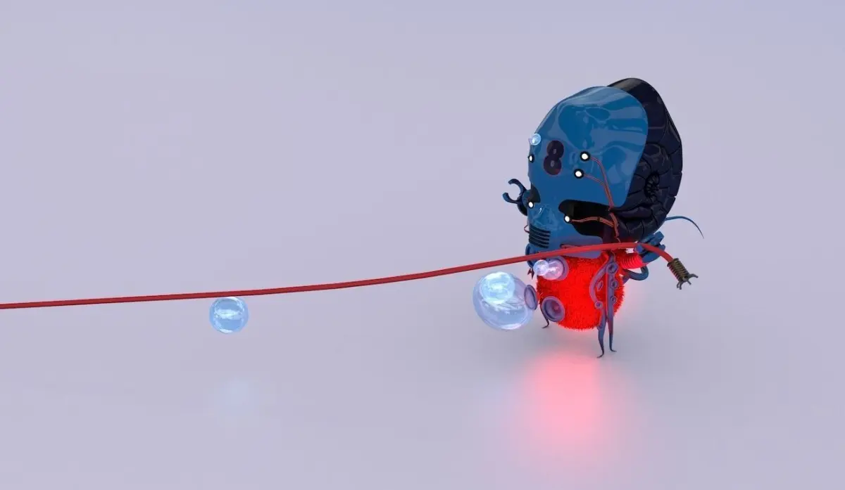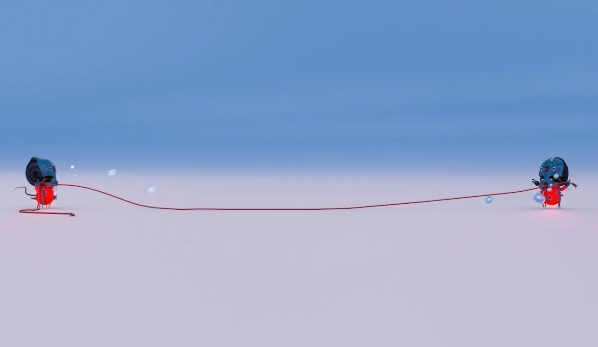 ALIENS cartoon figures at the tug of war with a plug cable.