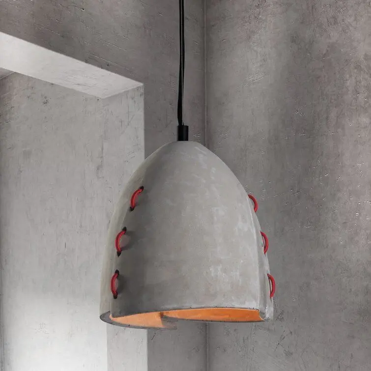 - Made of faux concrete with contrasting red accents woven through the shade, the Aliso Mini Pendant has the look of sewn layers. Suspended by wire and gray electrical cord, make an industrial statement in kitchen or bar areas.