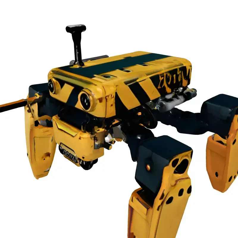 Presenting the ALITI F1 Industrial Quadruped Robot, a highly detailed 3D model. This robust drone features a rugged design with yellow and black hazard stripes. Its articulated four-legs and integrated sensors suit it for hazardous environments or advanced exploration. Meticulously crafted with clean topology, the model ensures seamless integration and smooth performance. It's optimized for real-time applications, making it an excellent asset for sci-fi game development, AR/VR, and futuristic industrial settings. This robot also excels in architectural visualizations, digital art, and cinematic rendering as a high-fidelity mechanical prop. The ALITI F1 is fully UV unwrapped and includes high-quality PBR textures for realistic material representation. It balances detail for static renders with optimization for real-time use. This model supports formats: GLB, OBJ, STL, ABC, DAE, FBX, USD, and PLY. Maximum compatibility across 3D software and game engines is assured. Elevate your creative projects with this versatile ALITI F1 robot.
