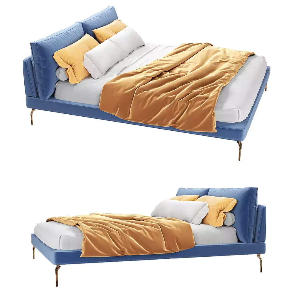 Separate objects: Bed_Base, Headboard_Cushions, Mattress, Blanket, Pillows, Legs