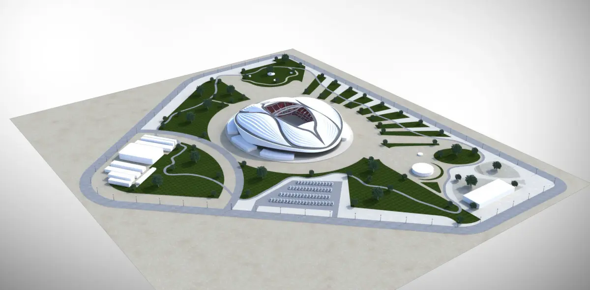 Aljanoub Stadium Qatar 2022 World cupArchive file contains the following : 1- 3ds max file format2-All texture maps included (same as the rendered images )The stadium is 100% correct as the real one in qatar 2022 with the chairs , grass ground , entraces ... etc The lanscape around the stadium is same as the real shown in satellite images of the stadium ( there may be some extra details )Enjoy