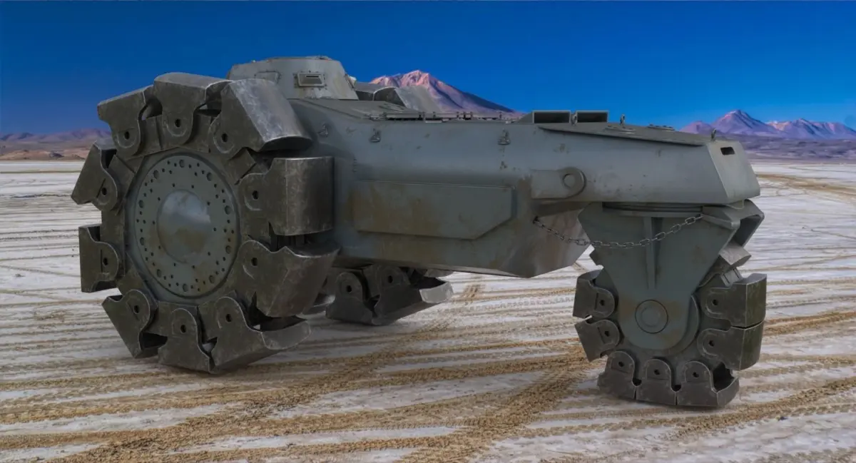 Built in the Alkett factory near Berlin, the VsKfz 617 Minenrumer was heavily armored and designed to detonate mines by simply rolling over them. (VsKfz is short for Versuchs Kraftfahrzeug, meaning test vehicle.) The three-wheeled vehicles wide track was designed to clear a mine-free path for other vehicles to safely travel. The sole prototype carried the Alkett chassis number of 9537 and was registered as NK-101