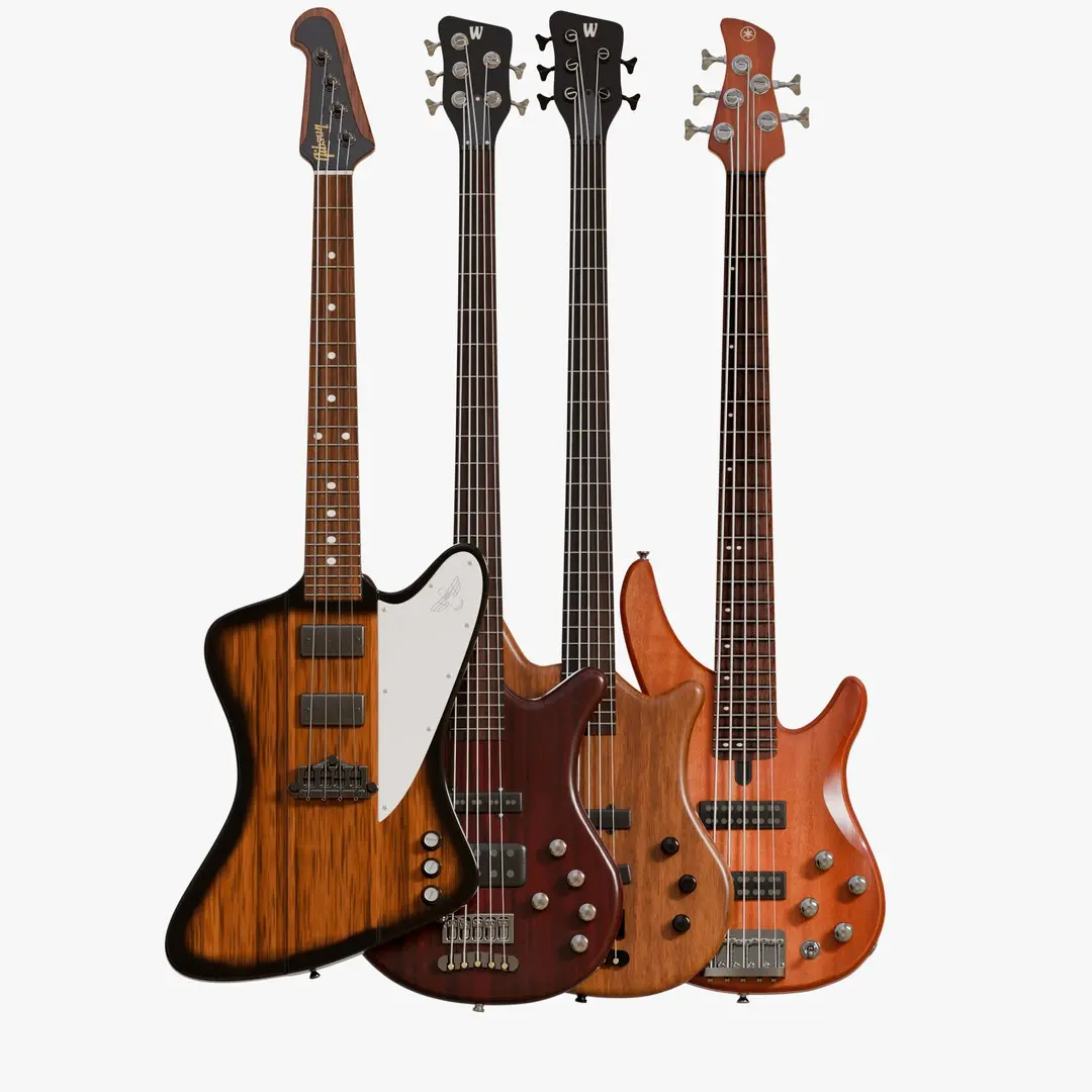 Unlock the ultimate collection of meticulously crafted bass guitars for your 3D projects. This exclusive pack includes 23 high-quality PBR bass guitar models -from classic Gibson and Fender icons to modern metal and boutique designs