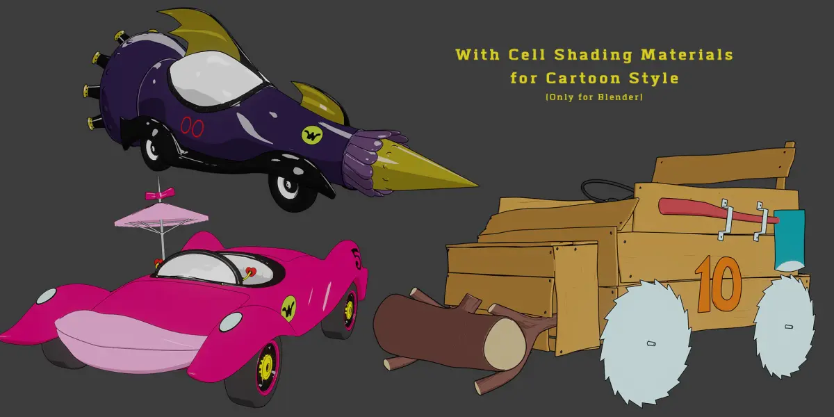 Bonus: Some models come with Low Poly versions, textures Sticks and cell-shading materials for cartoon style.