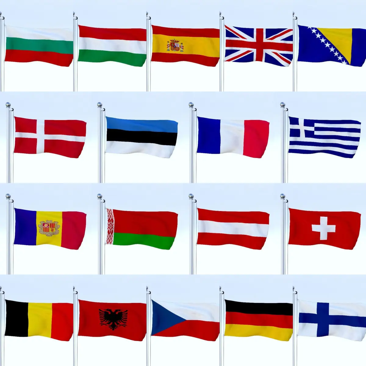 A model pack containing the flags of all European countries (45 flags). The models come in five formats:-.blend, rendered with cycles, as seen in the images, animated;-.obj, with materials applied;-.dae, with materials applied;-.stl, 3D print ready;-.fbx;The model pack contains an archive with separate folders for each country's flag, in which there are separate archives with each of the five different file formats for maximum convenience.Flags included (45): Albania; Andorra; Austria; Belarus; Belgium; Bosnia and Herzegovina; Bulgaria; Croatia; Czech Republic; Denmark; Estonia; Finland; France; Germany; Great Britain; Greece; Hungary; Iceland; Ireland; Italy; Kosovo; Latvia; Liechtenstein; Lithuania; Luxemburg; Macedonia; Malta; Moldova; Monaco; Montenegro; Nederlands; Norway; Poland; Portugal; Romania; Russia; San Marino; Serbia; Slovakia; Slovenia; Spain; Sweeden; Switzerland; Ukraine; Vatican City.The 3d models were originally created in Blender 2.78 and rendered with Cycles.The models have materials applied in all formats, and are ready to import and render.For any problems please feel free to contact me.Don't forget to rate and enjoy!