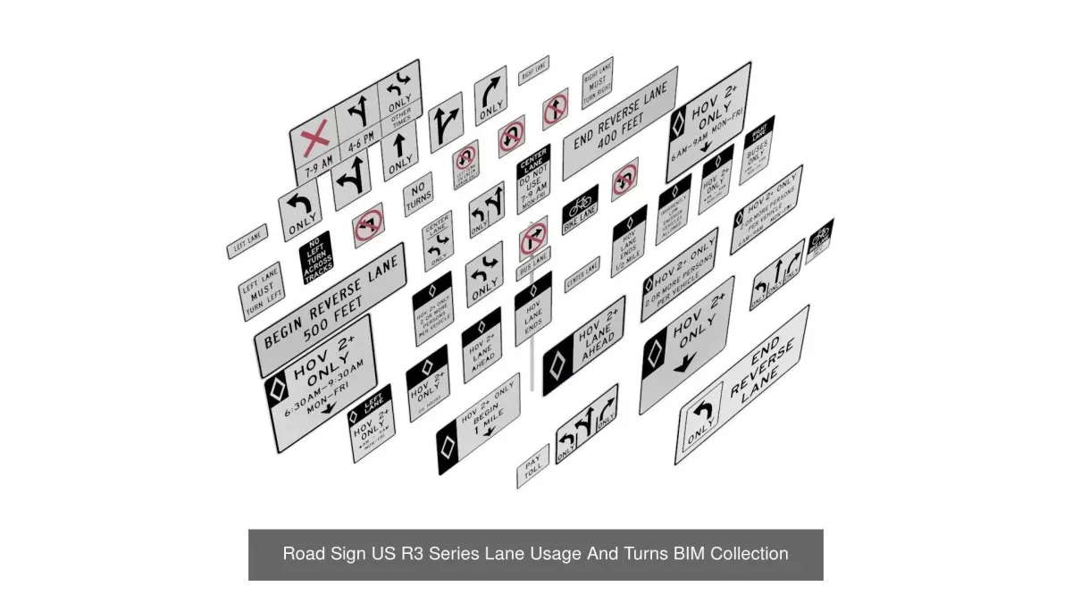 - Road Sign - US - R3 Series Lane USage And Turns (48 Different Signs)