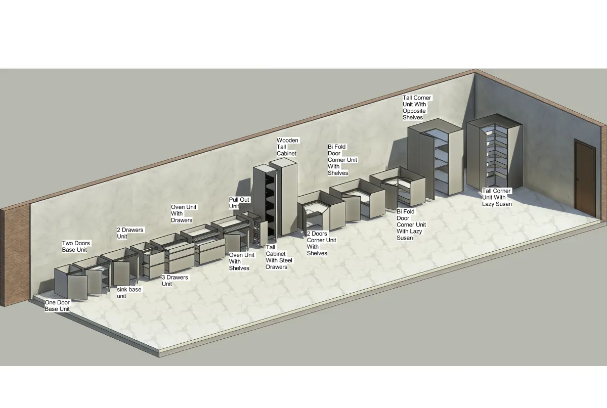 Bring your kitchen design projects to life with this complete, fully parametric Revit kitchen cabinet family pack. Designed with both flexibility and realism in mind, this modular set includes everything you need to build a professional kitchen layout in Revit with ease.This collection includes: Base cabinets (with and without drawers) Wall units in various heightsTall pantry units Sink cabinet Corner units Open shelving units Fully parametric controls (width, height, depth, materials, handles, etc.)All families are clean, lightweight, and 100% native Revit (.rfa) – no imported geometry. Perfect for both architectural visualization and construction documentation.Ideal for interior designers, architects, and BIM professionals working on kitchens in residential or commercial projects.No textures or rendering plugins required – pure Revit geometry and material parameters only.
