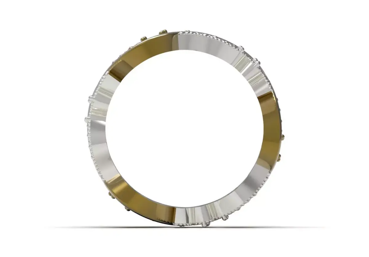 This CAD file is designed to create a wide, full gem ring that uses two different colors of gold to create a very luxurious and prominent look.