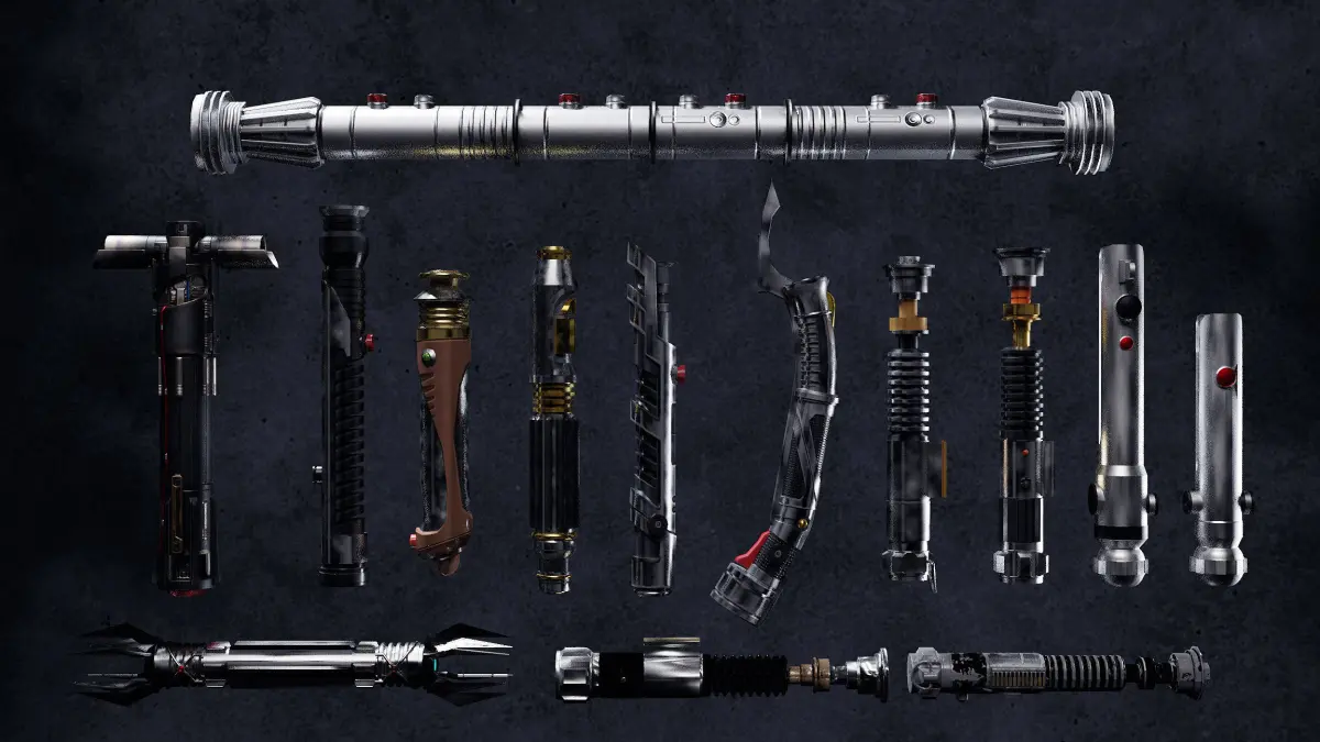 All lightsabers are low-poly and textured.